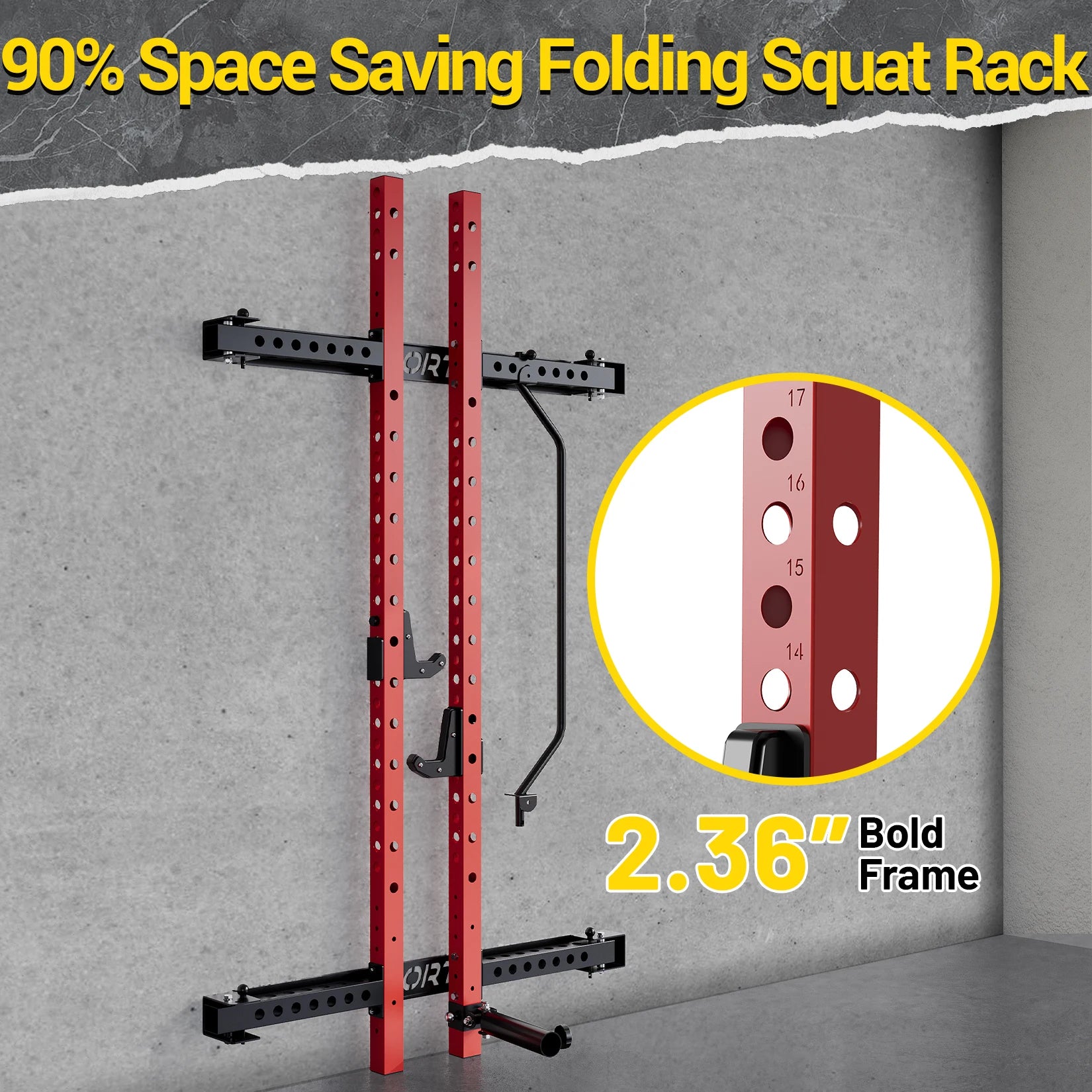 Space-Saving Design: This folding squat rack is perfect for home gyms, easily collapsing to save space when not in use, making it ideal for garages or smaller workout areas.