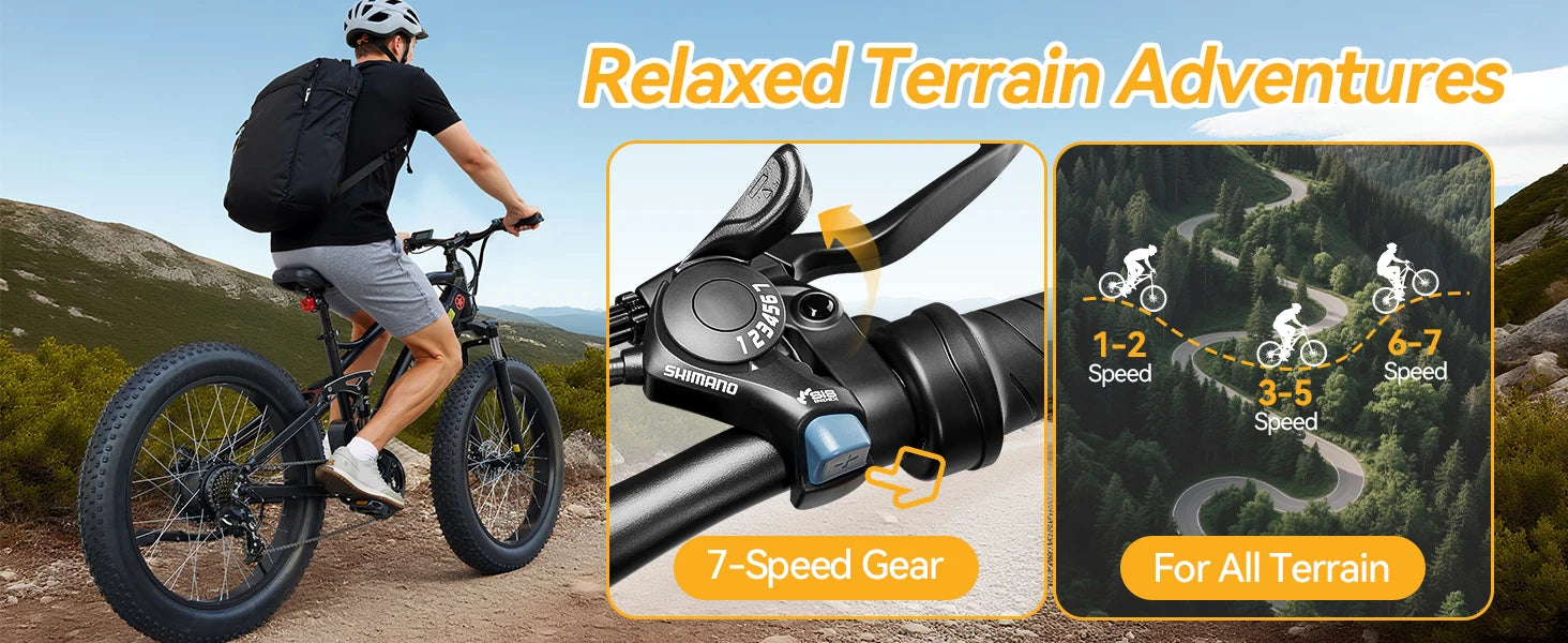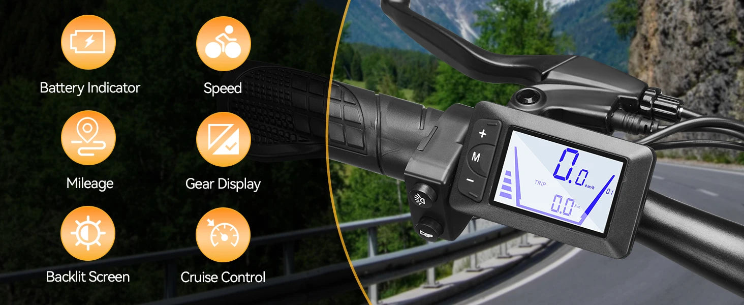 Smart Features: 5 riding modes (Throttle, Pedal Assist, Cruise, Normal, Walk) plus a 7-speed gear system let you customize your ride. The LCD display shows speed, distance, battery level, and PAS mode in real time.