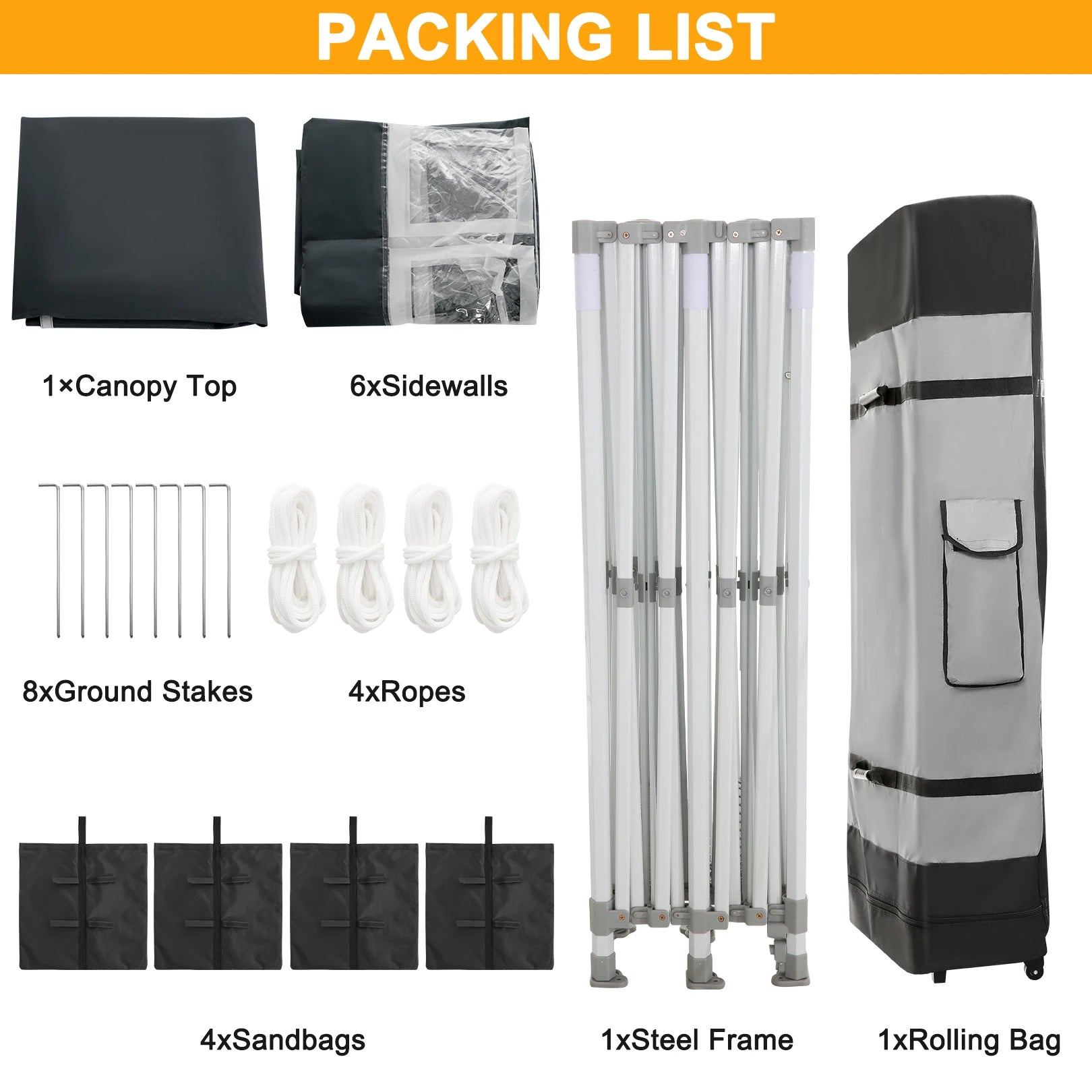10x20FT Pop up Canopy Tent for Parties, Heavy Duty Easy Setup Tent with 6 Sidewalls