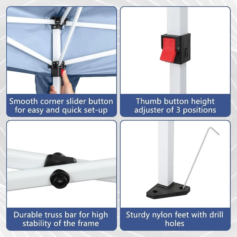 3 HEIGHT AJUSTERS: The 3-stage adjustable height feature of the outdoor canopy allows you to easily customize the height according to your specific requirements. This feature provides you with greater flexibility and comfort, making it perfect for various outdoor activities such as camping, picnics, and outdoor events