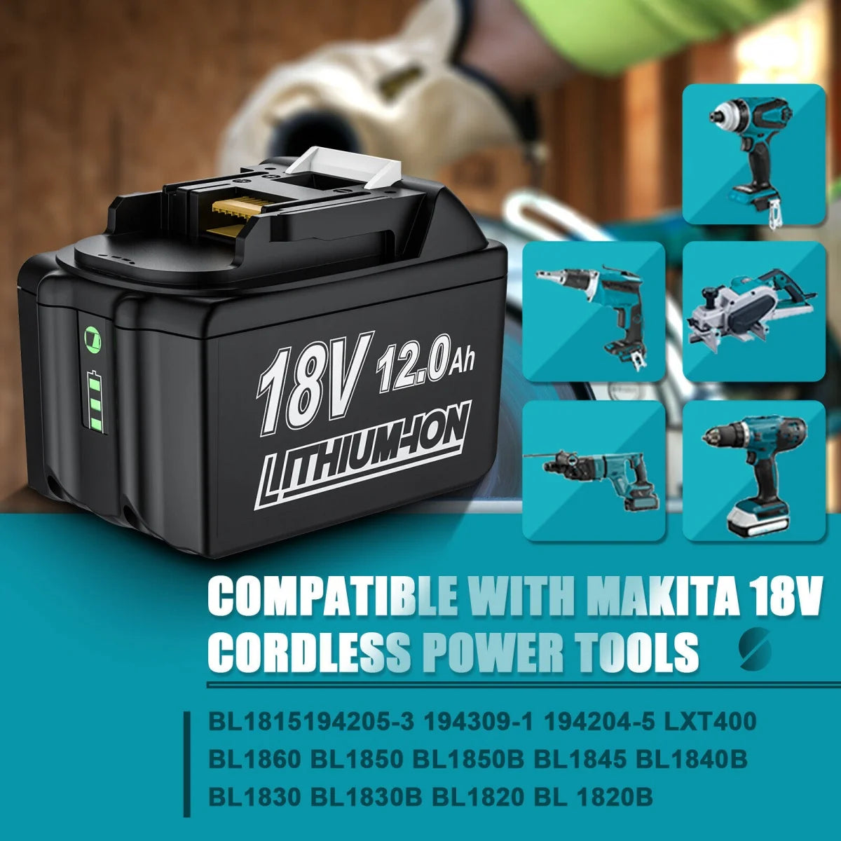 12.0Ah Li-ion Battery for Makita Battery 18 V BL1890 BL1850 BL1860B, BL1850, BL1840, BL1830, BL1820B