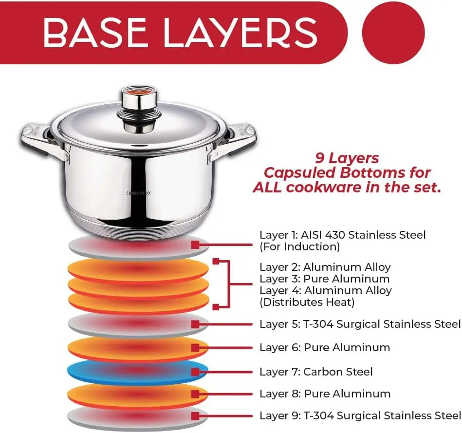 3. 18 piece t-304 heavy duty surgical stainless steel cookware set; great for induction cooking!