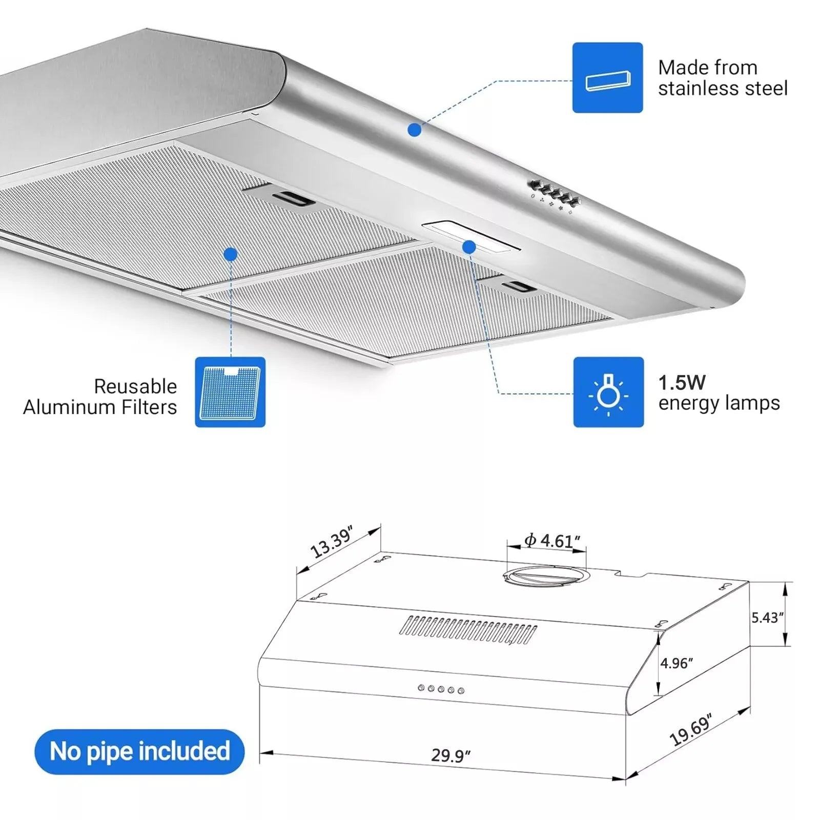Made of 430 stainless steel brushed finish, make your daily cleaning on the kitchen hood more simply, saving your cleaning time.