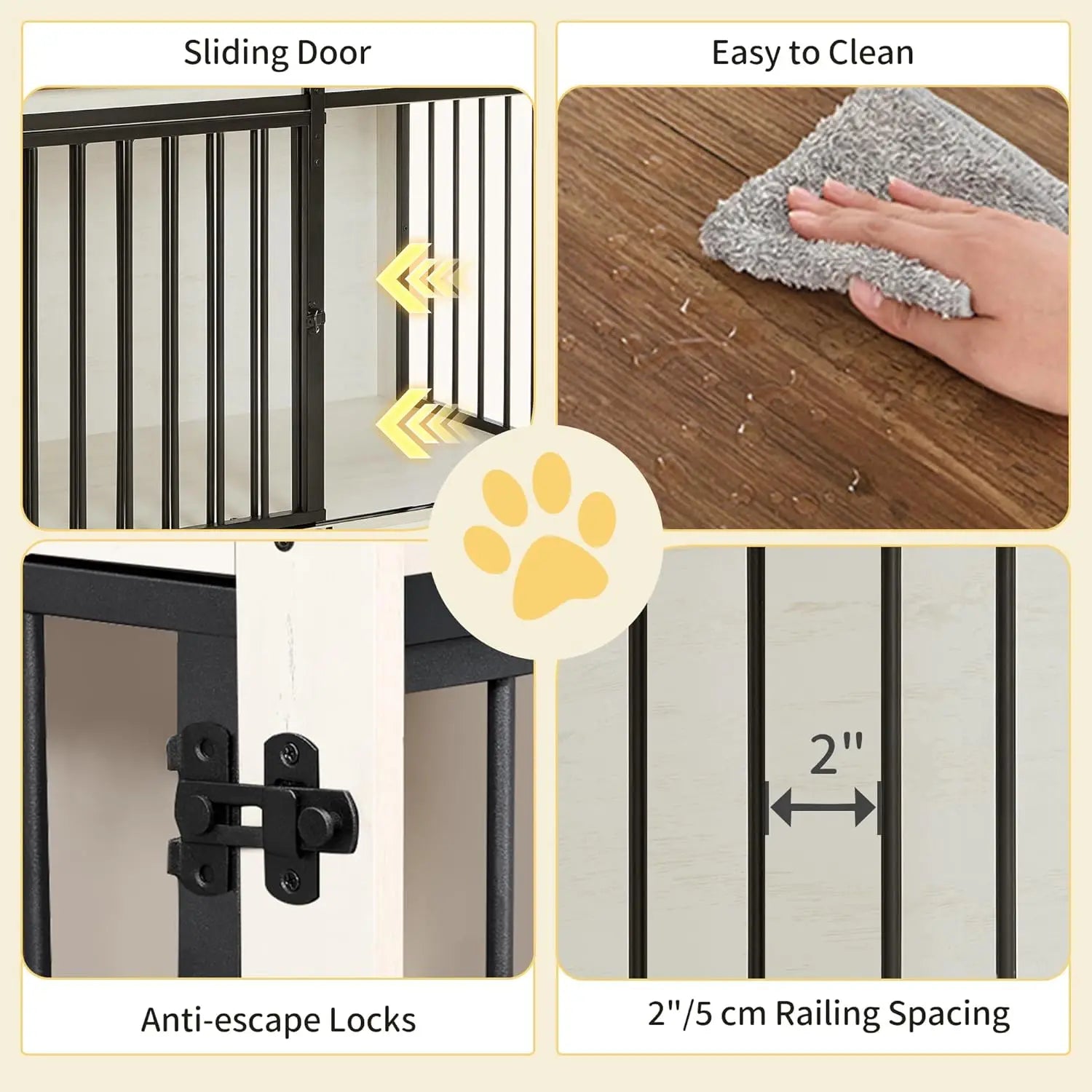 - Anti-Chew & Anti-Escape: We understand the importance of keeping your furry friend safe. That's why our dog kennel furniture is designed to be anti-chew and anti-escape. The edges of the boards are not exposed to the dog to avoid chewing on the boards, 0.4-inch steel tubes and double welded points make this large dog crate chew-proof and escape-proof!