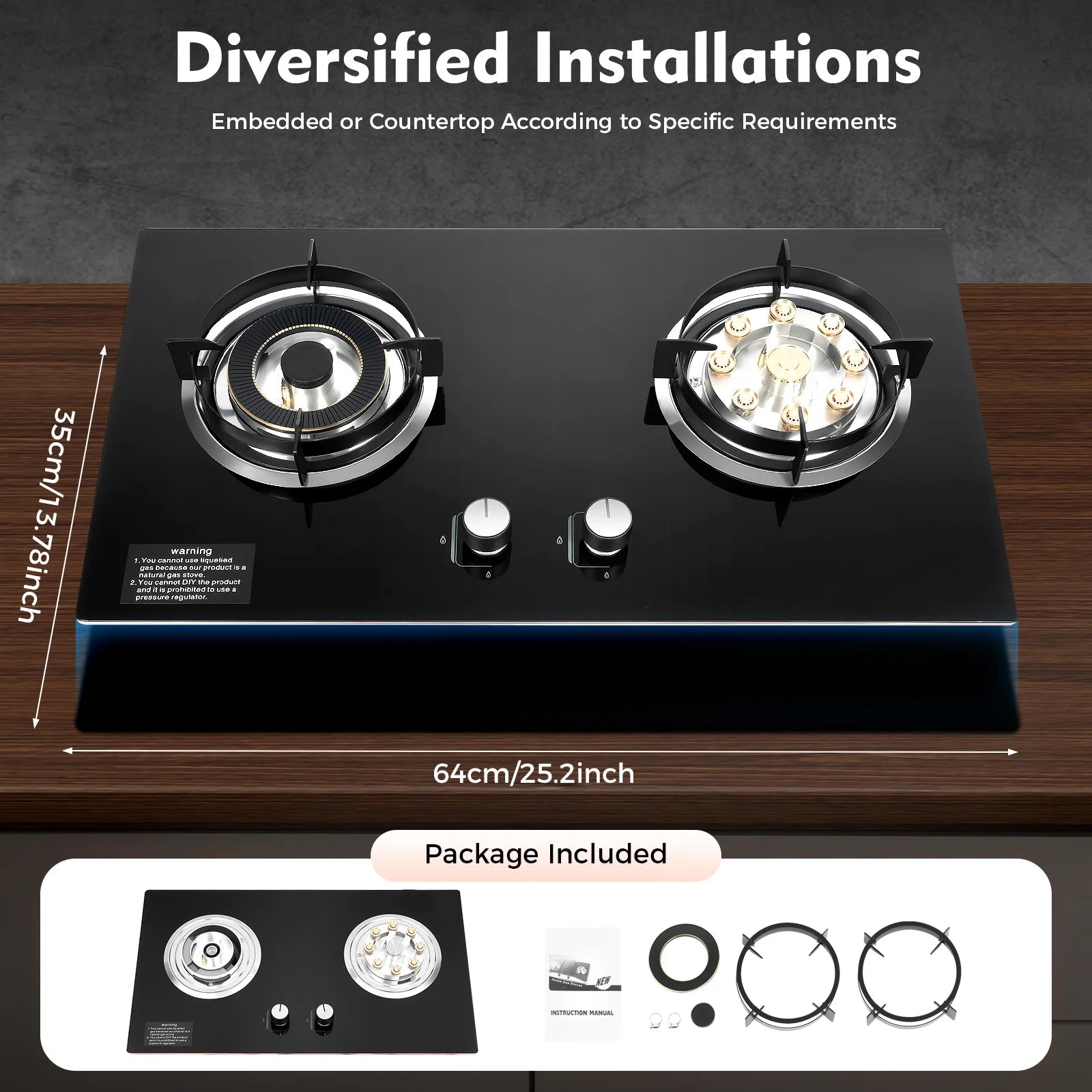 4.2KW+5.2KW Household Double Stove Hob Built in Gas Stove 2 Grade Dual-purpose Burner Natural Gas