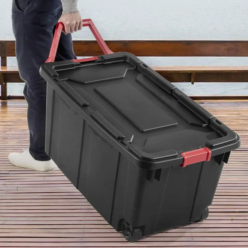 40 Gallon 2-Pack Heavy-Duty Plastic Storage Bins with Lids and Secure Buckles