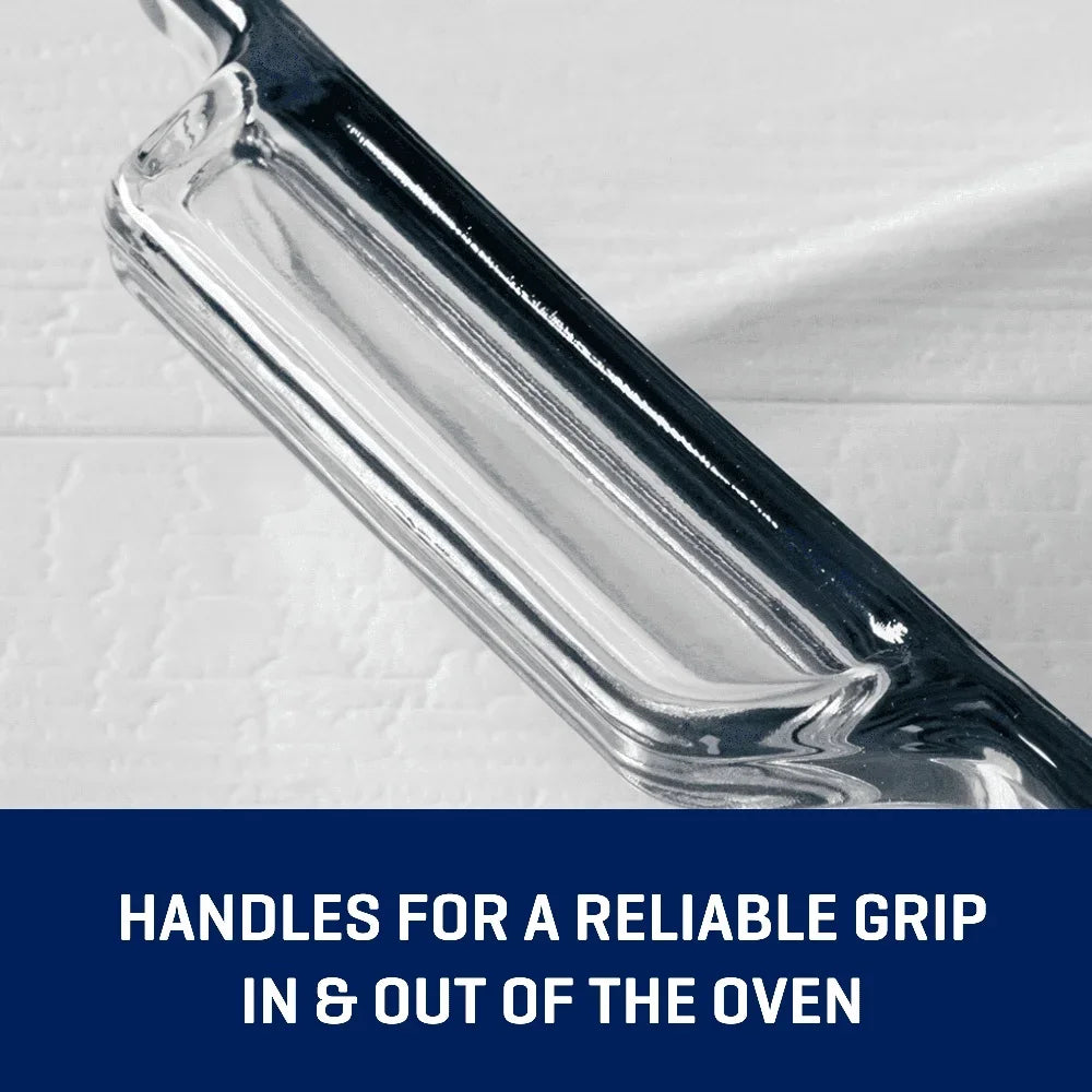 Oven Basics glass baking dishes are universally popular for a reason – they’re tested, trusted, and reliable. This bundle has everything you need to have a functioning kitchen. Bake chicken, pasta, roasted vegetables, casseroles, cakes, loaves, and more. Glass is tempered tough to handle high temperatures (preheated oven safe up to 425 F) and transport stresses so you can bake, transport, microwave reheat, dishwasher clean, and more.
