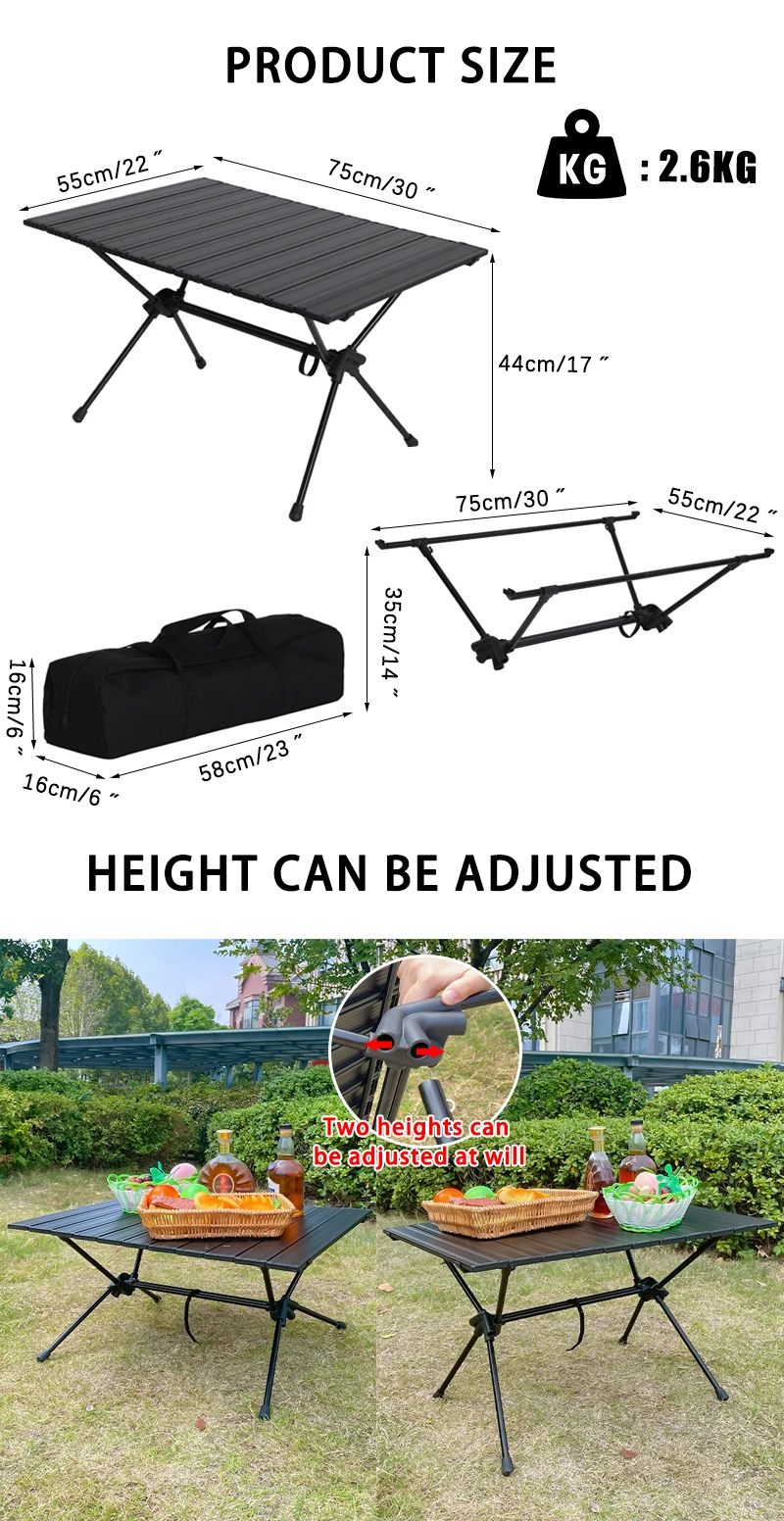 75cm Folding Table Split Leg Adjustment Outdoor Camping Egg Roll Table Portable Aluminum Alloy