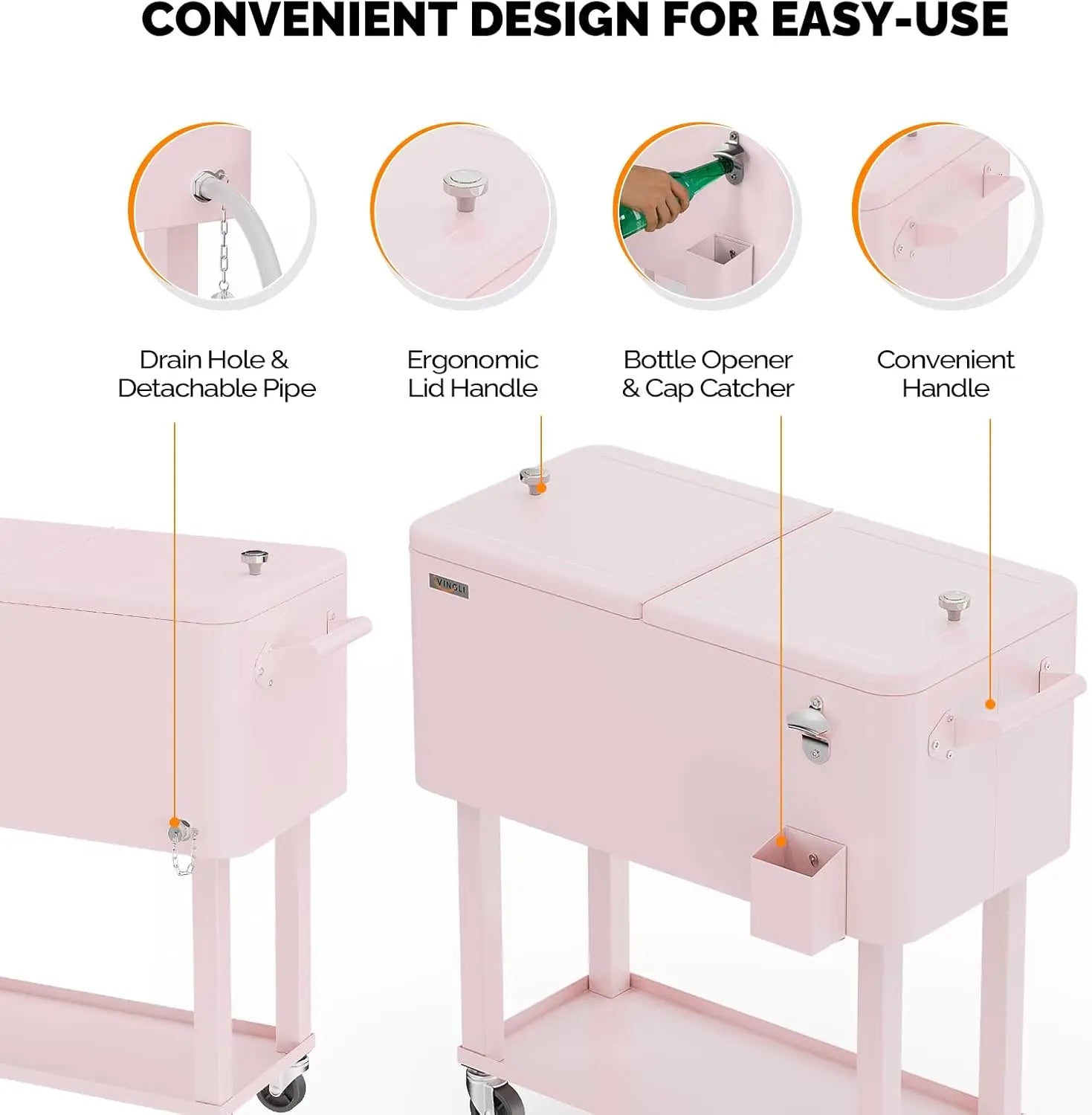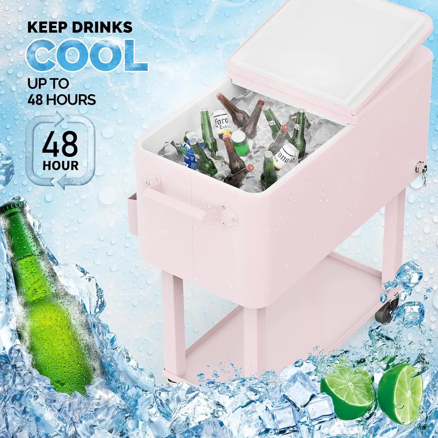 - 80 QUART COOLER CART: Holds up to 80 quarts (20 gallons) 96 aluminum can, It Will Be a Perfect Tool to Cool Your Drinks, Such As Beer, Beverage and Juicy.