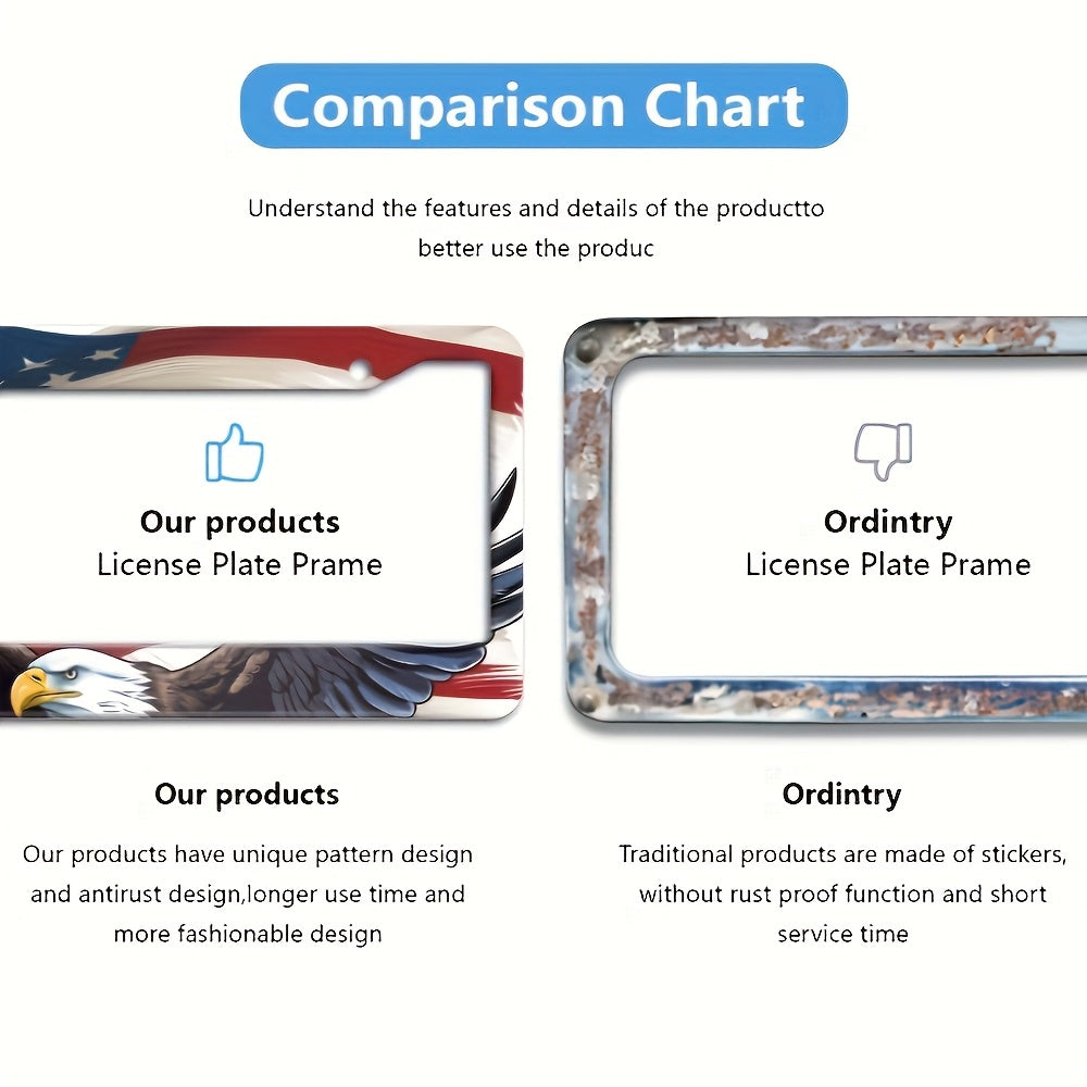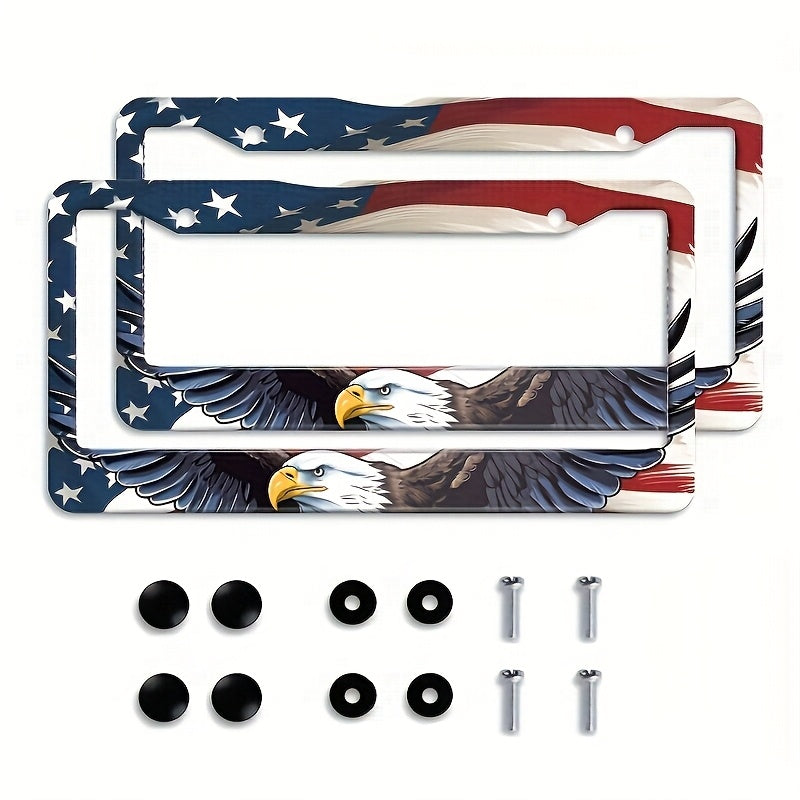 American Flag and Eagle - 2pcs License Plate Frame - Premium ABS Material - Windproof & Rainproof