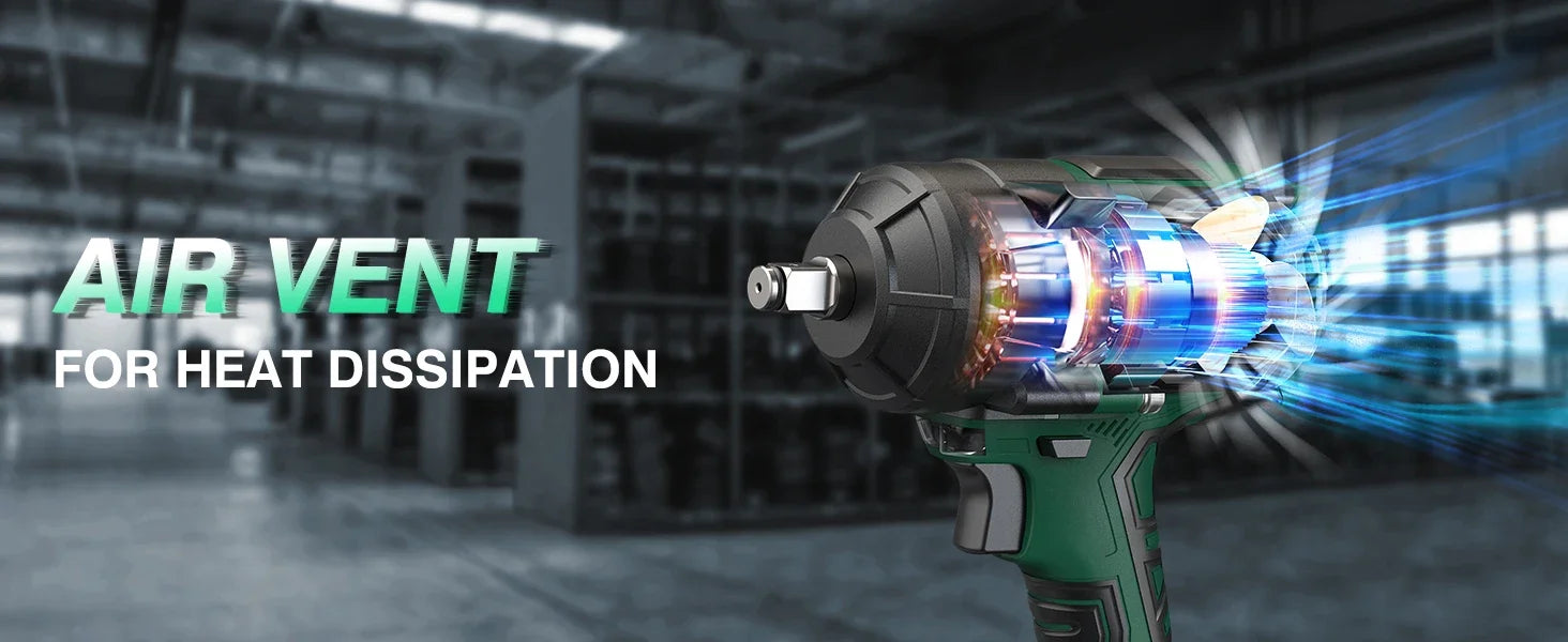 Brake-stop technology: Auto-reduces torque when nuts loosen, preventing injuries from flying debris.