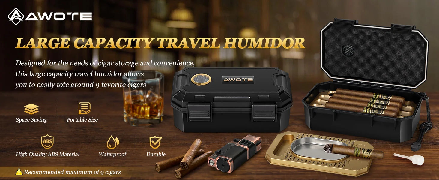 AWOTE Travel Humidor Set w/Torch Lighter, Ashtray, Humidifier & Hygrometer Portable Case Men Gift