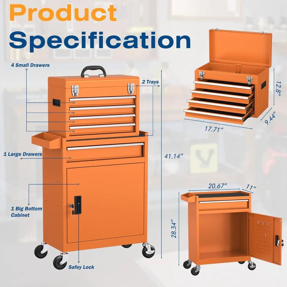 Drawers Tool Chest, Rolling Tool Box with Wheels and Drawers, Detachable Storage Toolbox with Lock