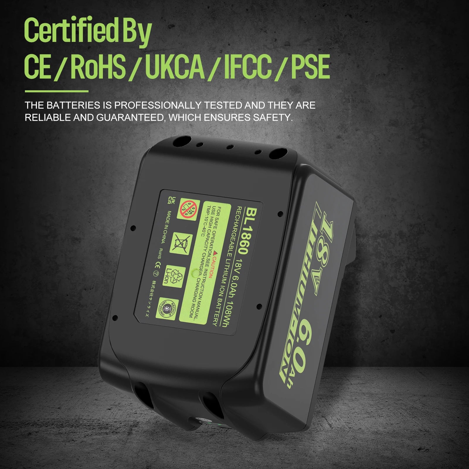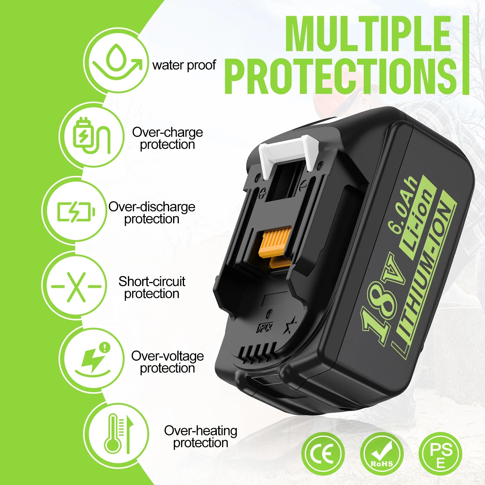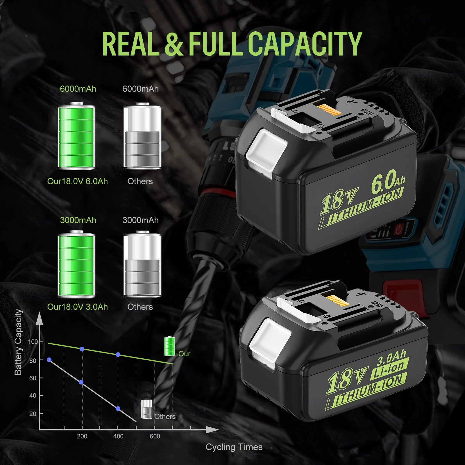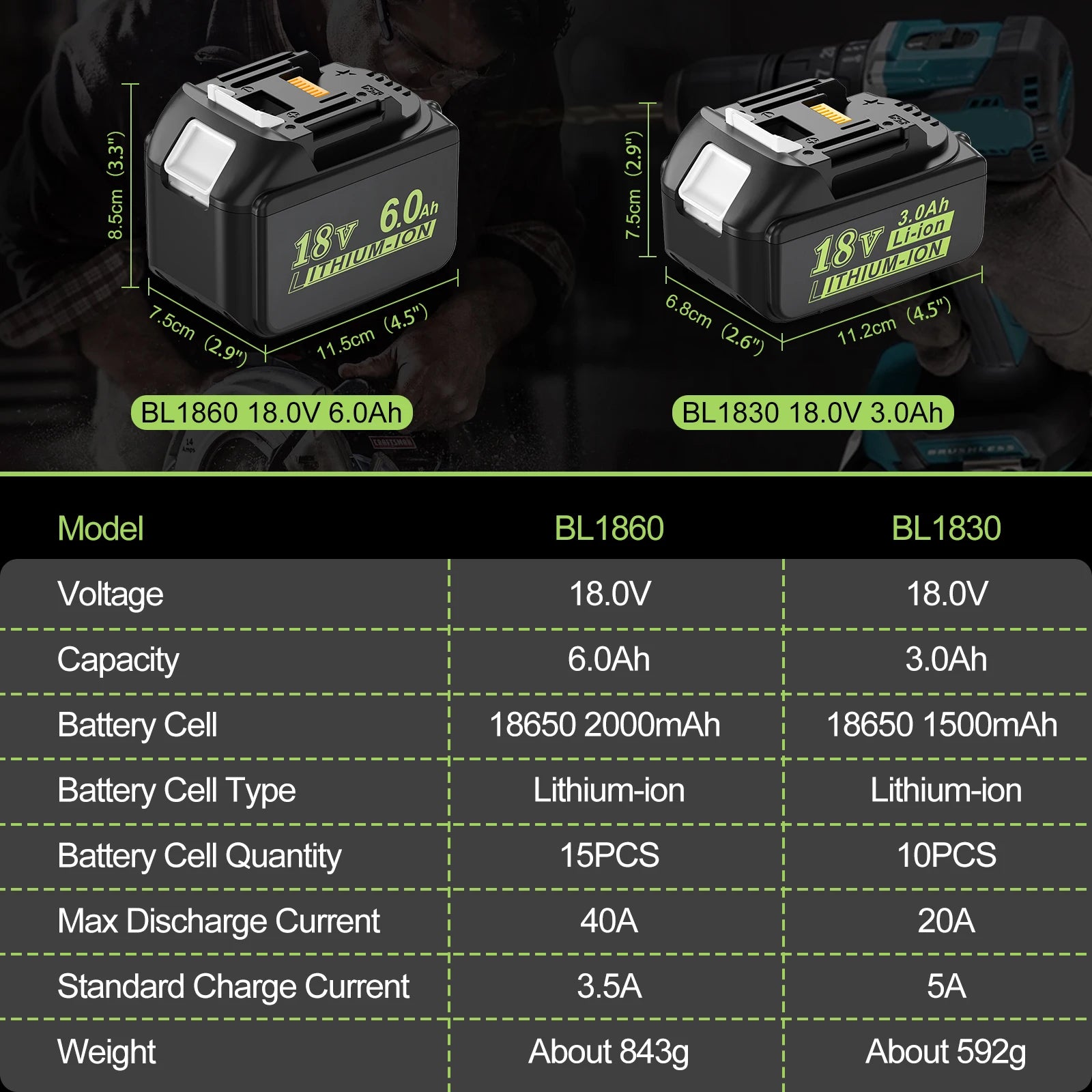 Dreamdash/Makita 18V Battery 6Ah Rechargeable Power Tools Battery 18V LED Li-ion BL1860B BL1830