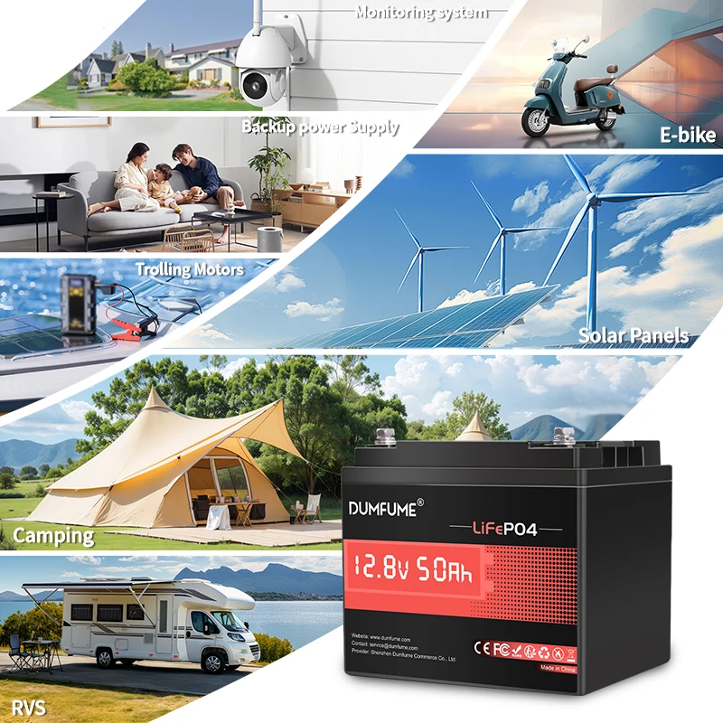 1.Dumfume LiFepo4 battery 12.8V 50Ah With a total energy capacity of 640Wh, Dumfume LiFepo4 battery offers similar usable energy to a 100Ah lead-acid battery but charges up to 5 times faster. It can be fully charged within 2 hours using the recommended charging current,minimizing downtime during use.