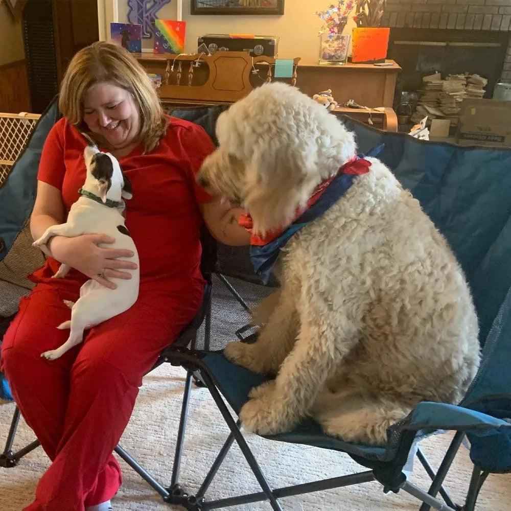 Folding Double Camping Loveseat Chair, Heavy Duty Portable Outdoor Chair with Storage for 2 People