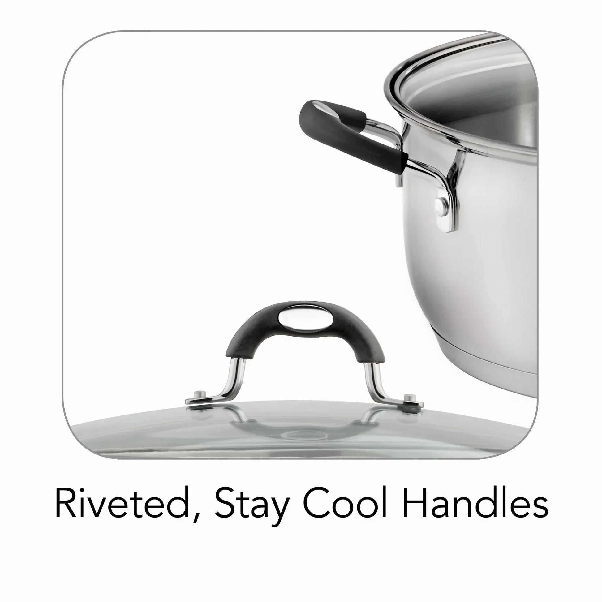 - The induction-ready tri-ply base distributes heat quickly and evenly, while the heat- and shatter-resistant glass lid allows you to monitor your cooking progress.