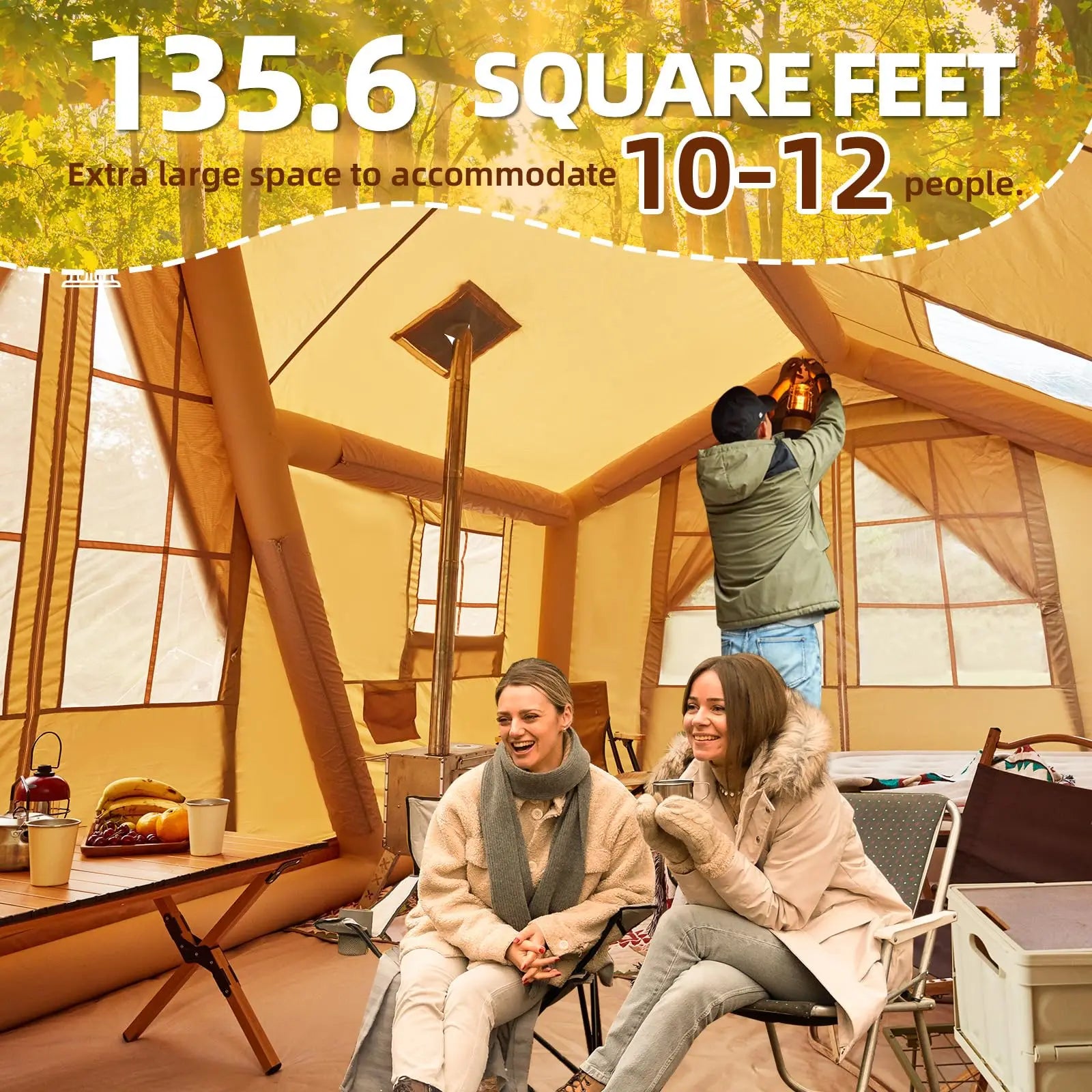 Inflatable Tents for Camping, 8 Person Tent w/TPU Skylight, Mesh Windows & Pump, 4 Season Glamping