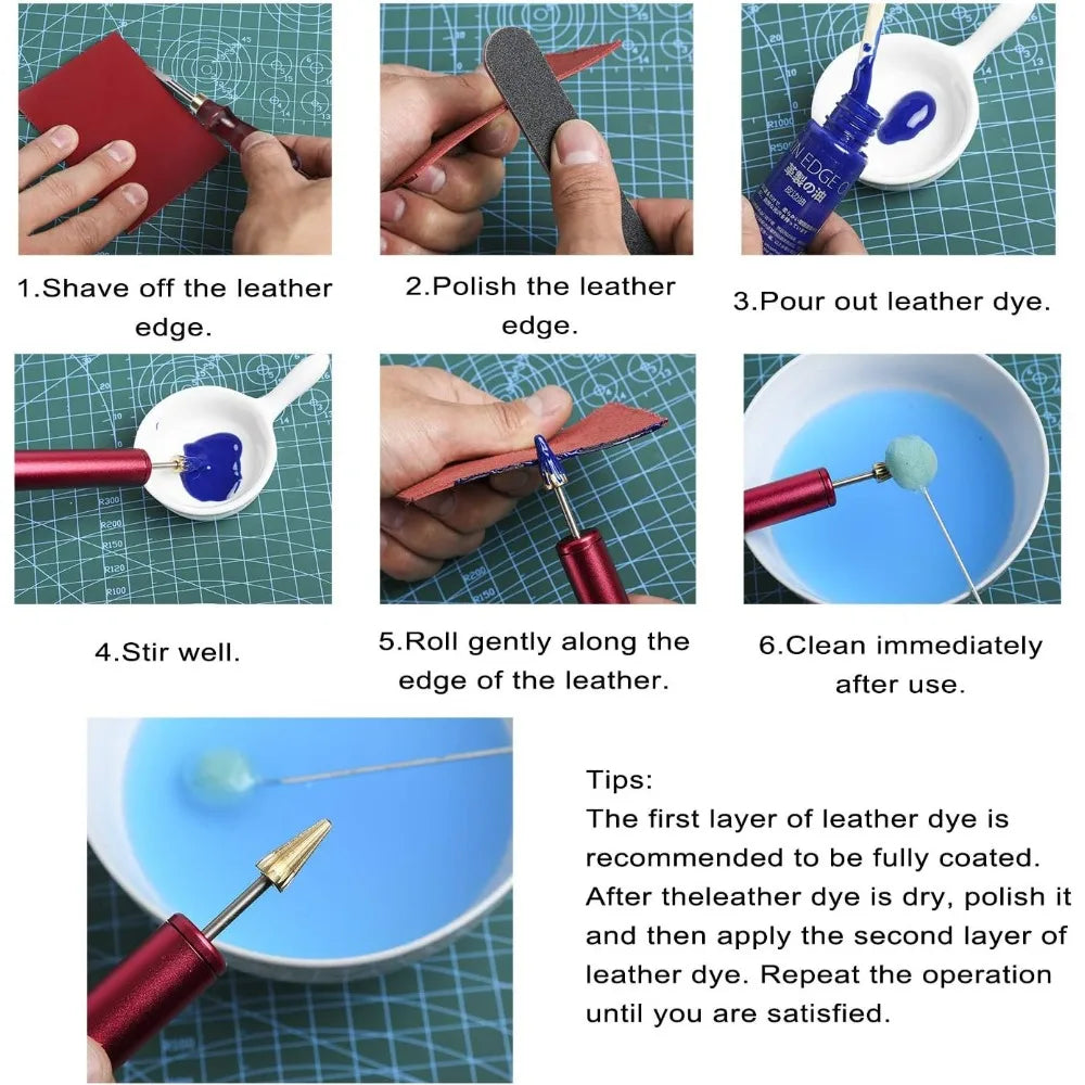 This Professional Leather Tooling Kit is a comprehensive set containing 372 pieces of leather working supplies, designed to handle a wide range of projects. It includes essential tools for detailing, such as leather stamping, beveling, stitching, and dyeing, making it suitable for sewing different types of leather, canvas, fabric, denim, tarpaulin, and paper. The kit expands your leather working capabilities with additional tools like the Oval Shape Leather Craft Hole Punch Set, Safety Skiver Kit, Leather Edge Dye Pen, Leather Craft Rotating Tool, and Roller, ensuring you have everything needed for all your leather crafting endeavors. For personalization, the leather stamping kit offers 20 popular patterns for leather carving, perfect for adding unique designs to wallets, handbags, belts, and more. It also includes shoe pattern making tools to enhance the aesthetics of your creations. Getting started in leather crafting is made easy with this starter set, which includes a self-healing cutting mat and a PVC mat to protect your work surface, as well as a wooden handle nylon hammer that absorbs extra strength and extends the life of your punch and stamping tools. This leather craft tools set is an excellent gift for both beginners and experienced crafters. It includes high-quality knives, needles, threads, and carving tools, allowing you to unleash your creativity and craft personalized leather accessories or one-of-a-kind handmade leather goods.