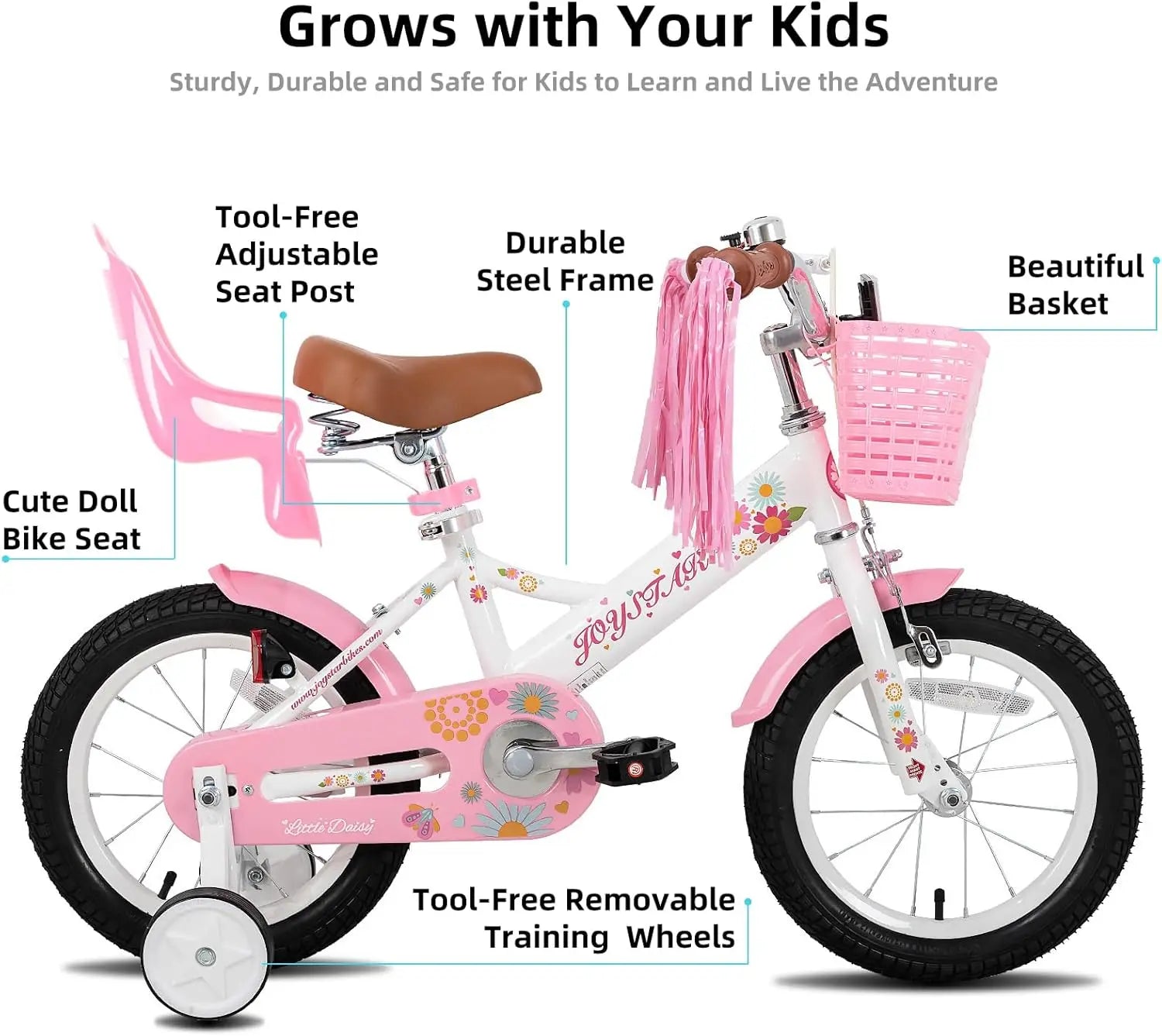 Little Daisy Kids Bike Ages 2-7 Years, 14 Inch Girls Bikes w/Doll Bike Seat & Streamers