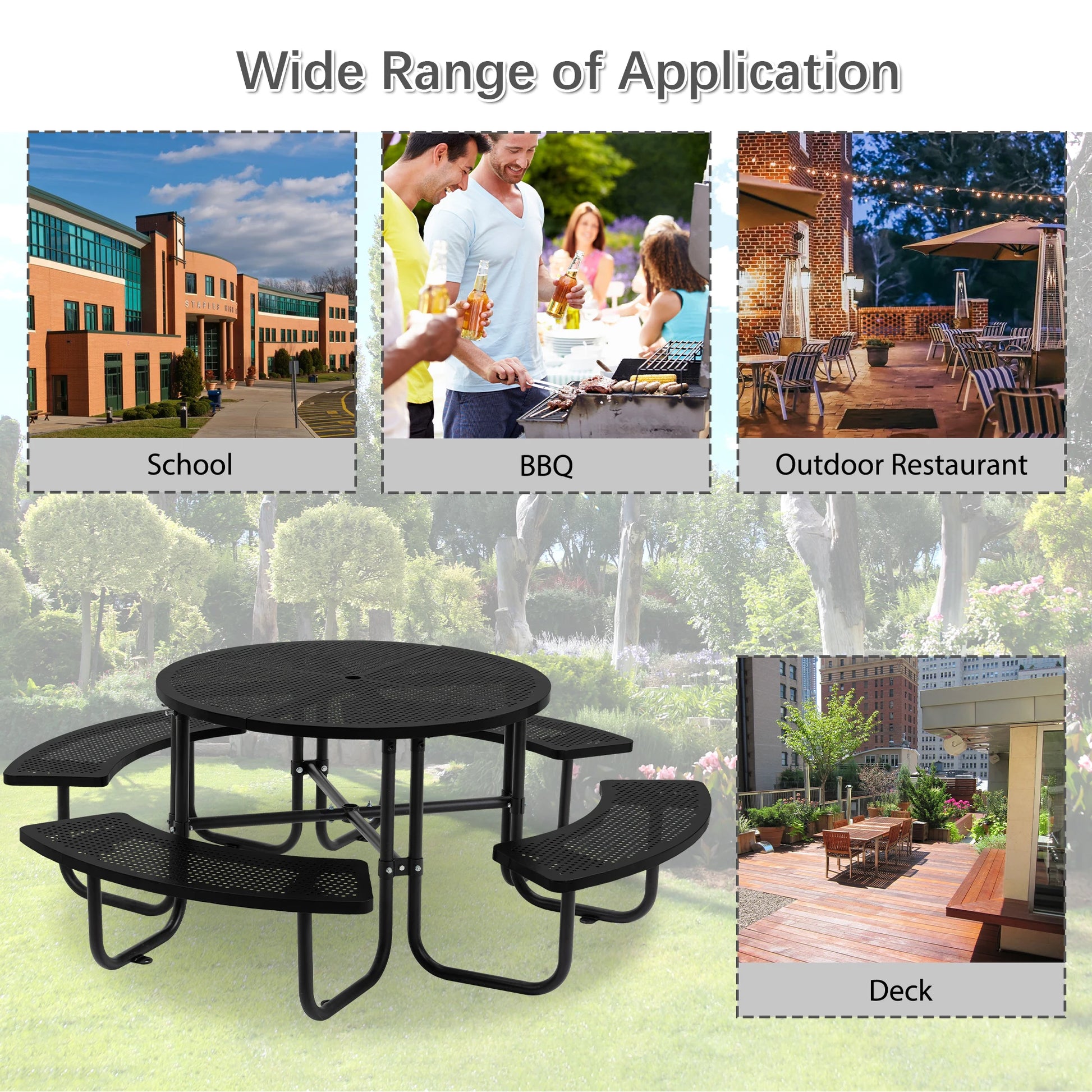 LZBEITEM Round Metal Picnic Table with Umbrella Hole, 46" Steel Portable Picnic Table Courtyard BBQ