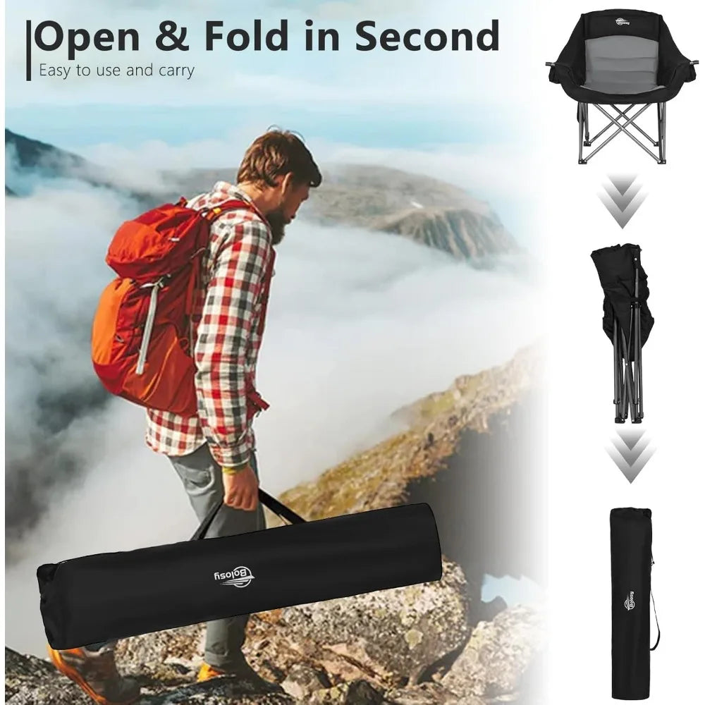Oversized XL Camping Chair, Heavy Duty 500 lbs Support, Padded Folding Lawn Chair w/Cup Holder