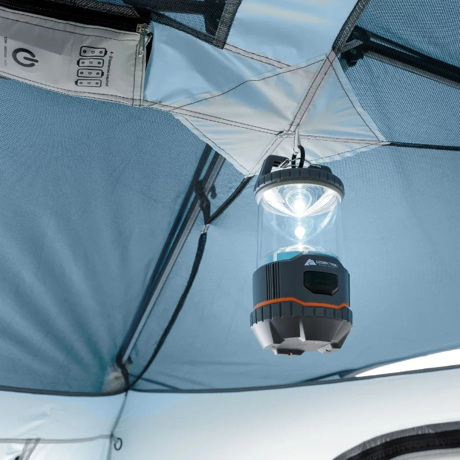 The Ozark Trail 6-Person Instant Cabin Tent with LED Lights sets up in 60 seconds or less. . It features pre-attached poles that easily unfold and extend for complete construction. This tent also includes ambient LED-lighted poles that provide a comfortable glow throughout the tent and can be adjusted with low, medium and high settings. The roomy cabin-style tent has three large windows and two ground vents for maximum air circulation and clear outdoor views. This instant camping tent comfortably fits two queen airbeds or up to six sleeping bag campers on the floor. Its unique design allows you to stay organized and connected by incorporating a hanging organizer, a media pocket and an electrical port. You can rest assured that the Ozark Trail 6-Person Instant Cabin Tent with LED Light will be a game-changer for future camping adventures.