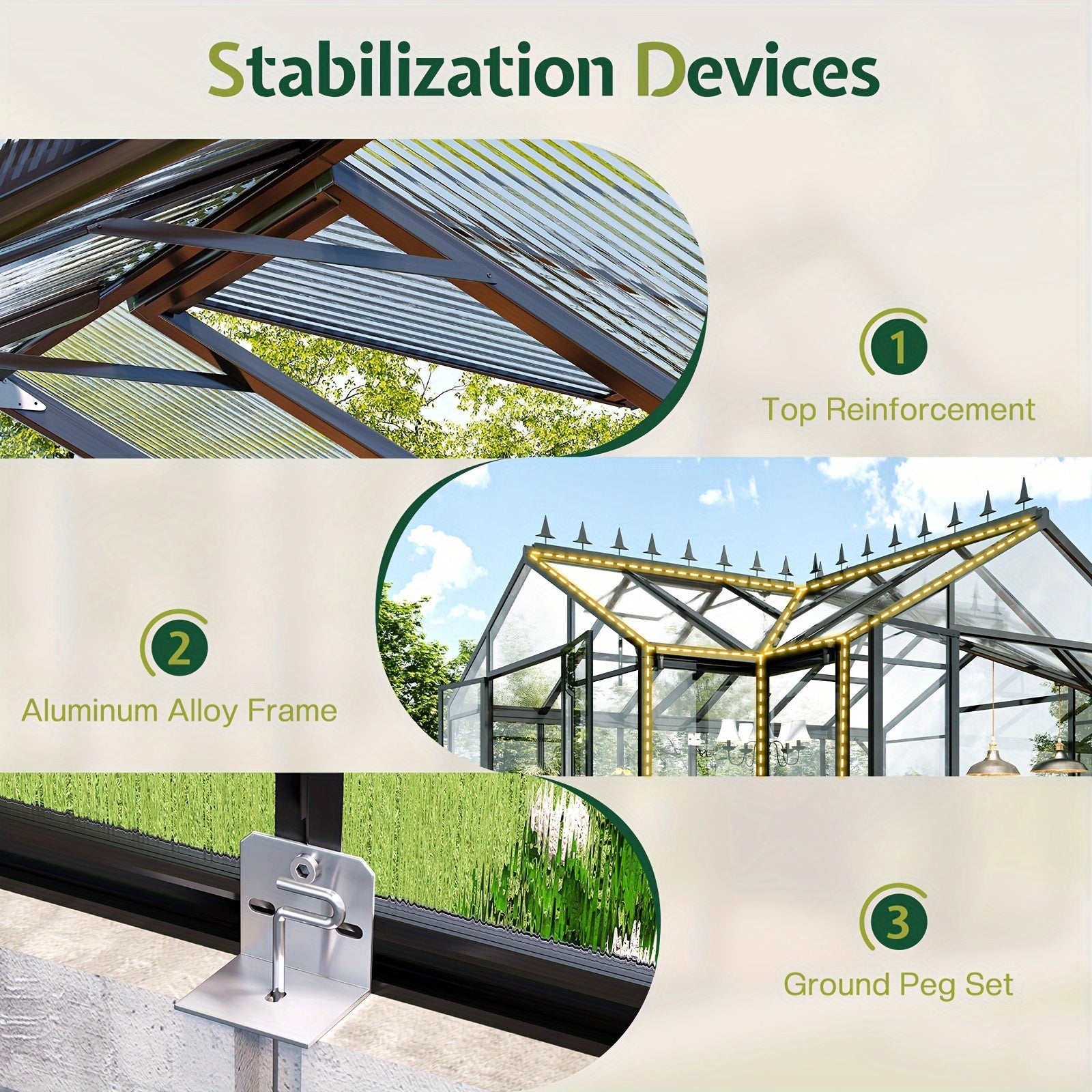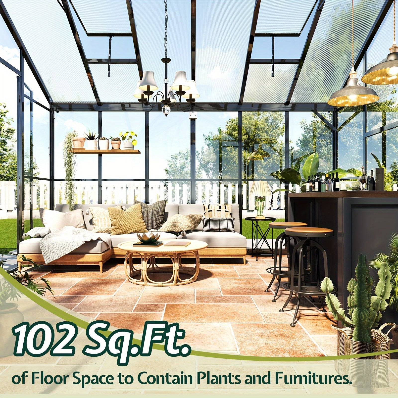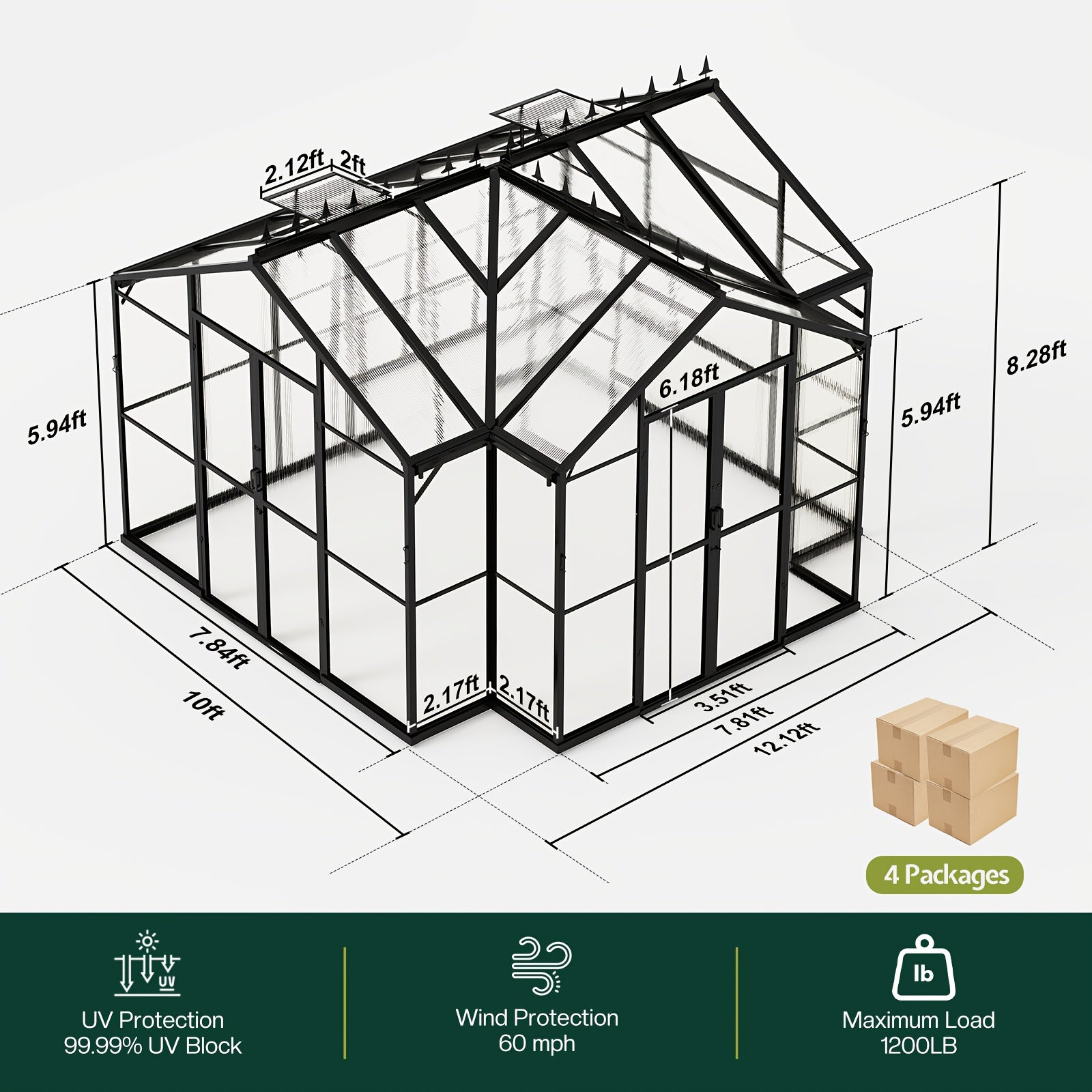 PAPABABE Greenhouse 12x10x8ft Aluminum Frame/Quick-Connect/2 Hinged Doors/Vents, Garden Houses