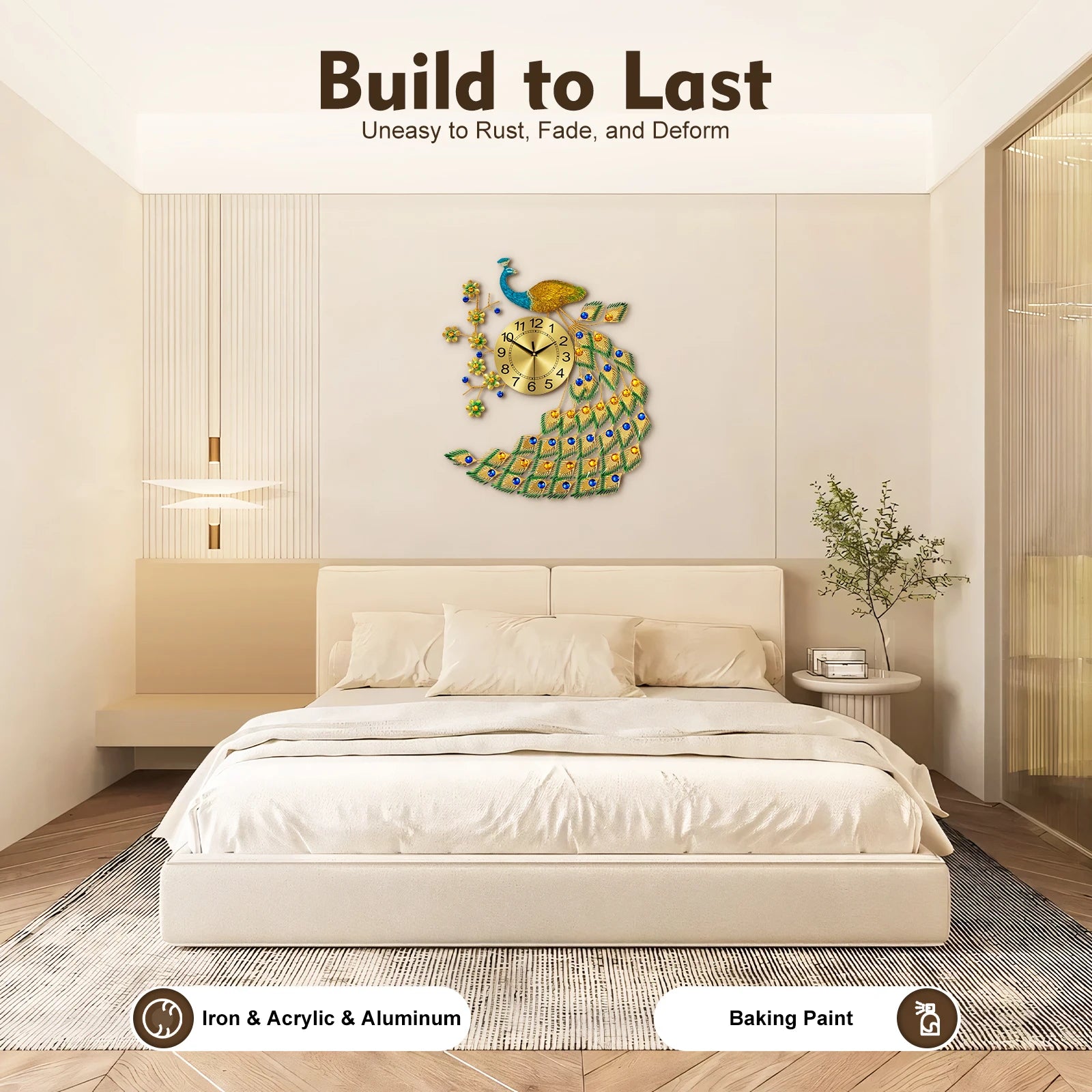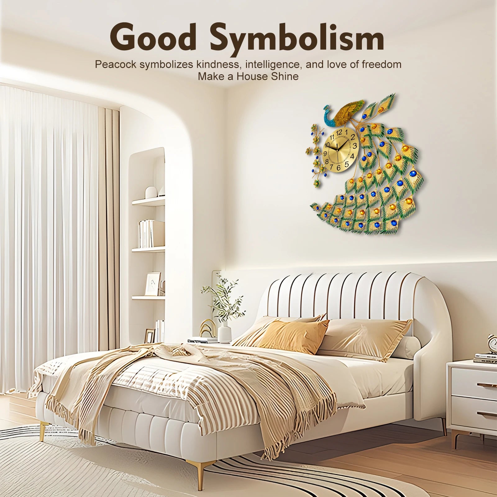 Beautiful Symbolism: Peacock is a kind, intelligent, freedom-loving, and peaceful bird, a symbol of happiness. Hanging a clock designed with peacock imagery in your living room means that good luck and wealth will be at your doorstep!