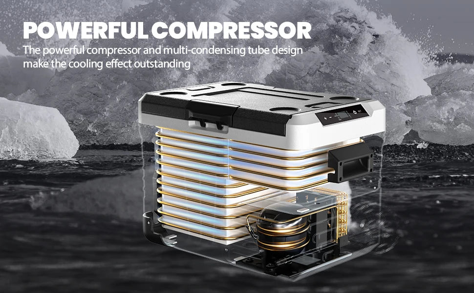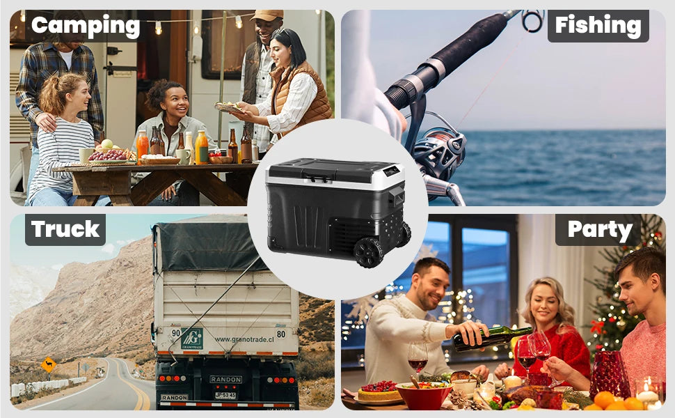 SIMZLIFE 35L Car Portable Freezer 12V Refrigerator Cooler 12V/24V DC Fridge with Wheels