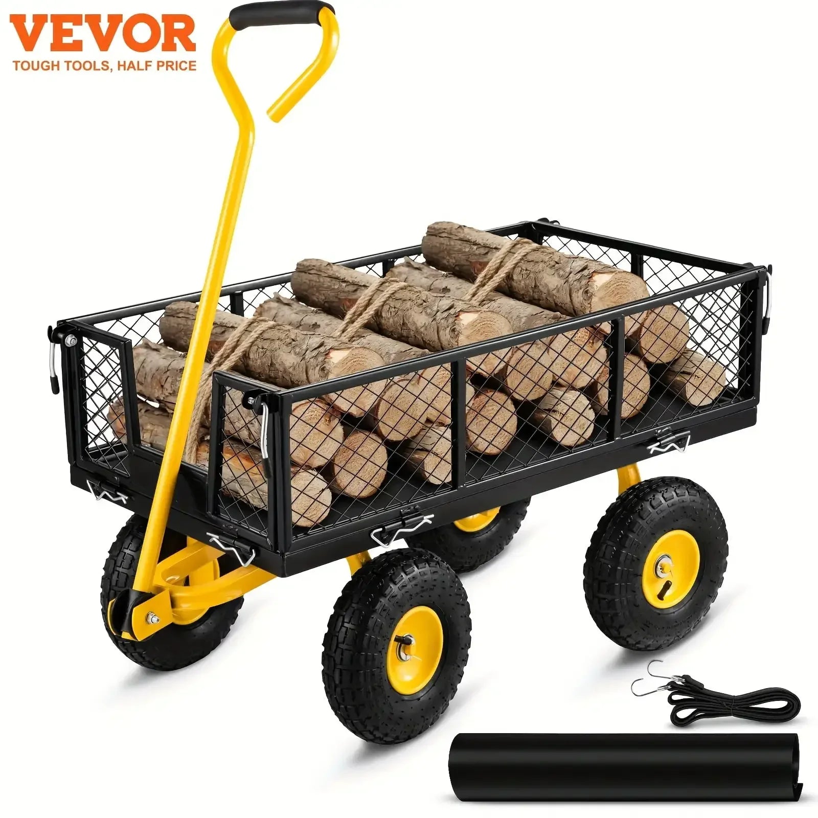 Durable with Super Capacity: multi-al steel garden cart will become your number 1 assistant for garden planting. It will solve all problems when transporting equipment weighing up to 900 lbs. The cart has a steel mesh bed that is 37.8 in long and 20 in wide, carrying large amounts of planting tools with ease. Thanks to its fully-welded powder-coated steel frame and iron mesh frame, the cart withstands all outdoor weather conditions for years to come.Transform into A Flatbed: Do you still worry about your metal wagon's capability to accommodate larger loads? uniquely designed side meshes can be removed, making the cart a flatbed, widening the space, and enhancing the practicality. Note: Long-term heavy loading is not recommended. Carry heavy loads and get any job done right for years to come.The King of Terrain: Our garden cart flatbed is equipped with 10-inch tires, enhancing stability and security during use. The upgraded pneumatic tires feature noise-reduction and shock absorption. These impact-proof tires ensure the garden cart adapts to various road conditions, such as grass, snow, beaches, rock, etc. Get ready to roll over any surface and go where you need to be!Highly Flexible Handle: Compared to those lawn wagons whose handles are screw connected, our handle connections are all-welded, so the handle will not break during use. Additionally, there are rubber gaskets to achieve a smooth and flexible 180° rotation. You can freely control the direction. Rotate into comfort and feel the difference with every use.Power That Follows You on The Go: Whether you use this yard wagon to carry planting tools or equipment, load wood, store sundries, or even use it as a cart to transport kids or pets, it will satisfy all your needs. It is perfect for gardens, lawns, yards, beaches, farms, warehouses, etc. Get ready to take your work to the next level and start your gardening tour.