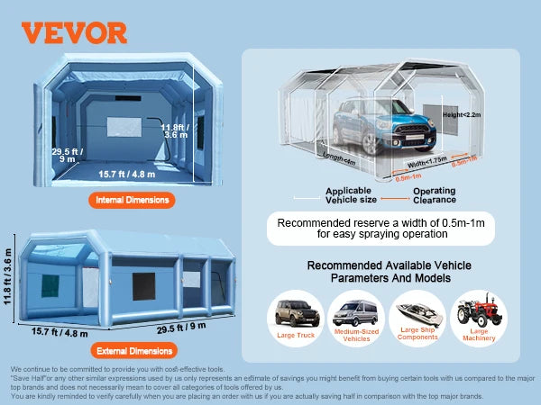 We provide paint booths in various sizes from 10FT to 33FT, allowing you to choose the perfect size for your vehicle and specific needs.