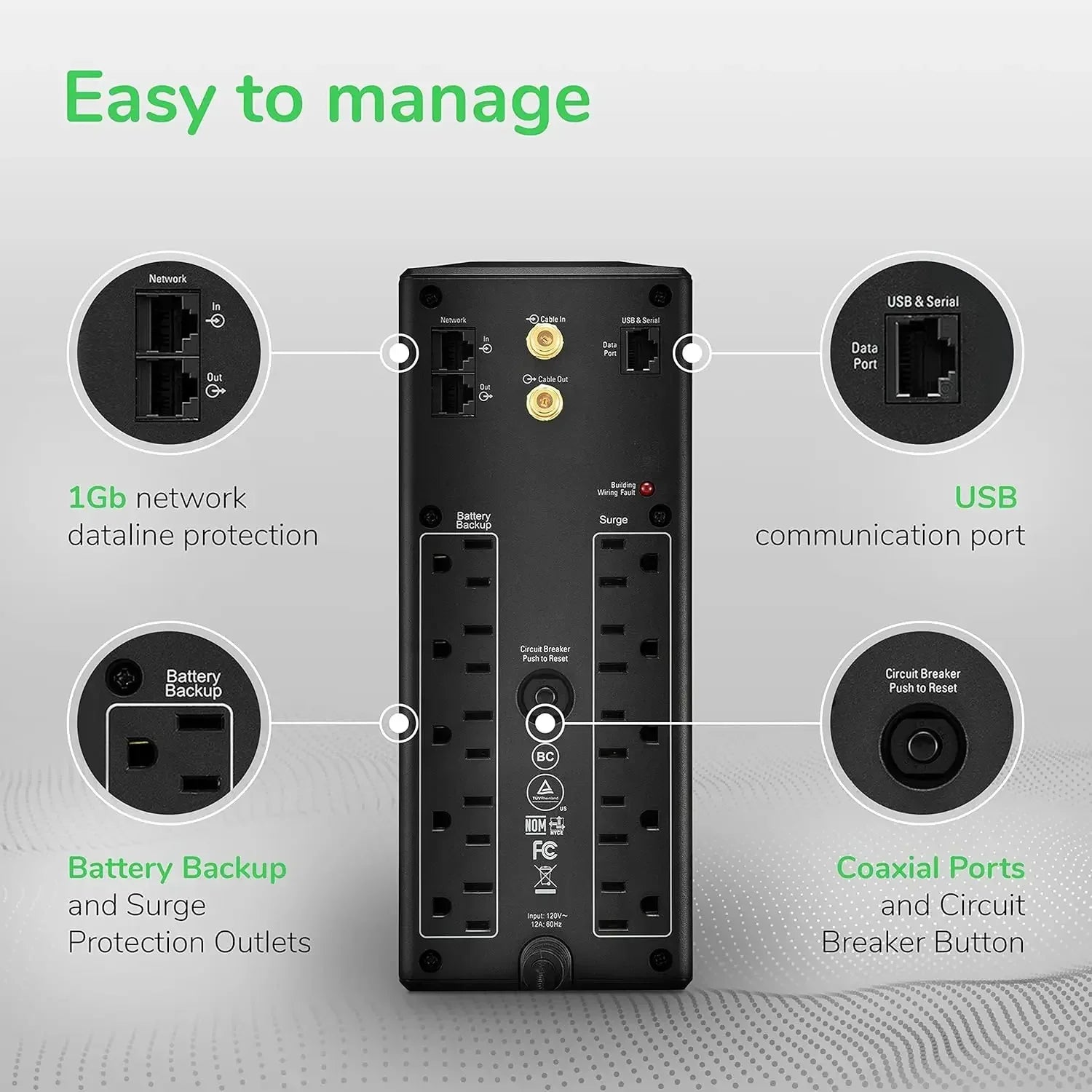 UPS 1500VA UPS Battery Backup and Surge Protector, BX1500M Backup Battery Power Supply