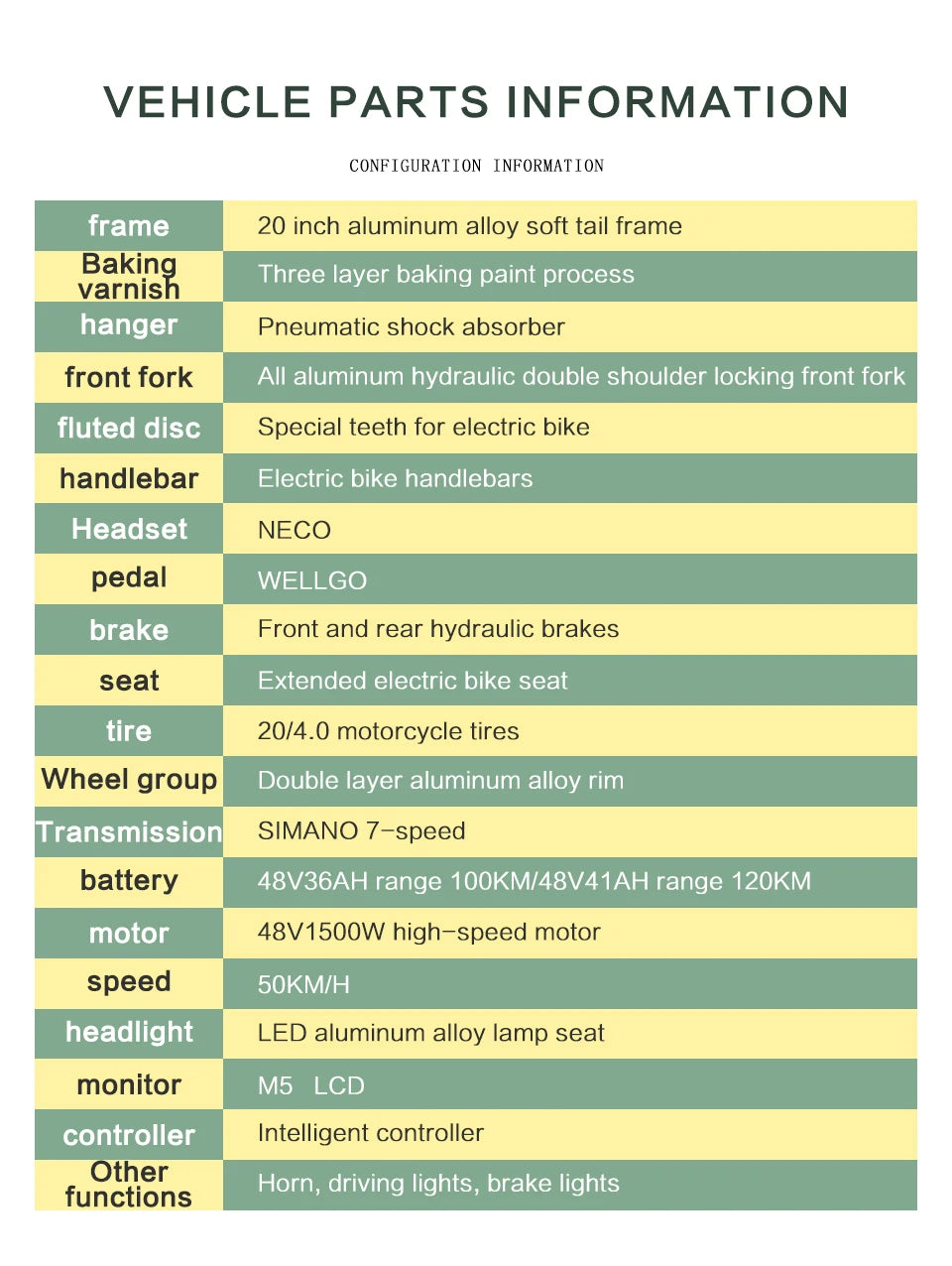 US Stock 1500w 48V Fat Tire Electric Bike Motorcycle Adults Off Road All-Terrain Bikes