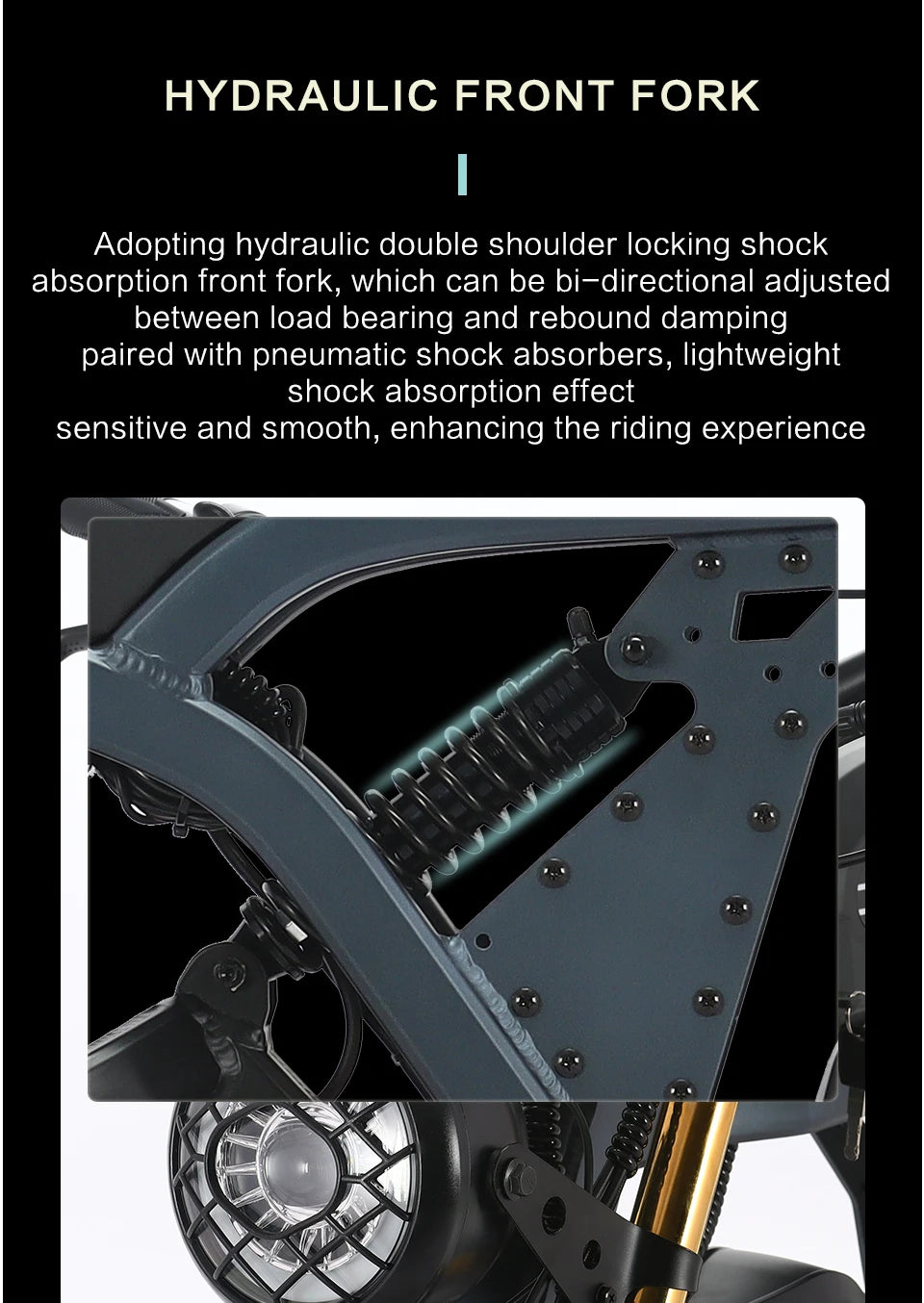 Feature: Hydraulic double shoulder locking shock absorption front fork , Front and Rear Hydraulic Brake System,