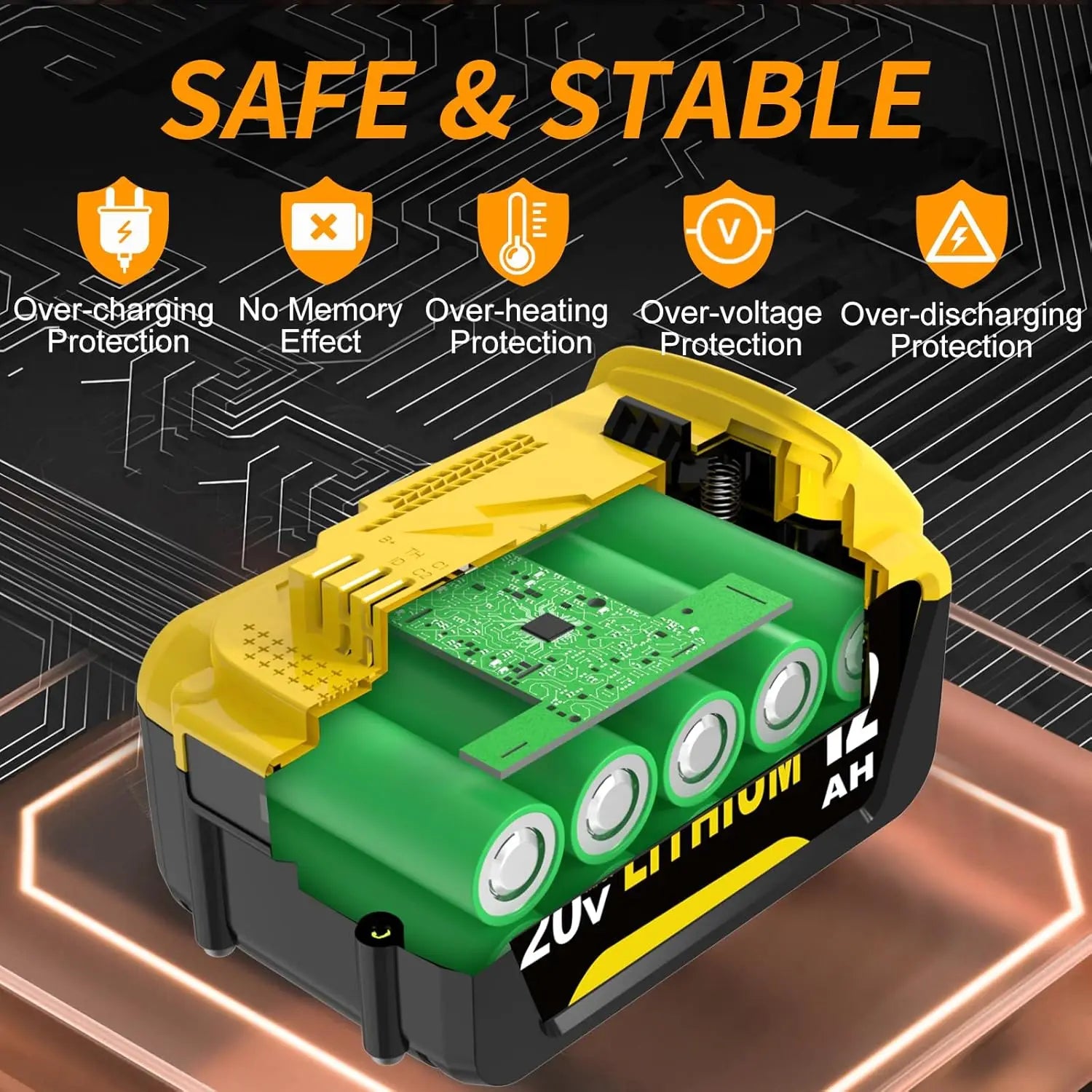 1~4 * 12.0Ah Replacement for Dewalt 20v Max Batteries