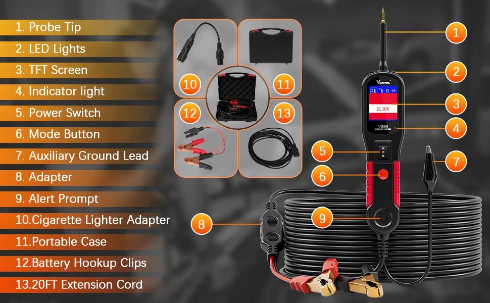 VDIAGTOOL V200 Car Electric Circuit Tester 6V-30V Power Probe Kit Electrical System Tester LCD