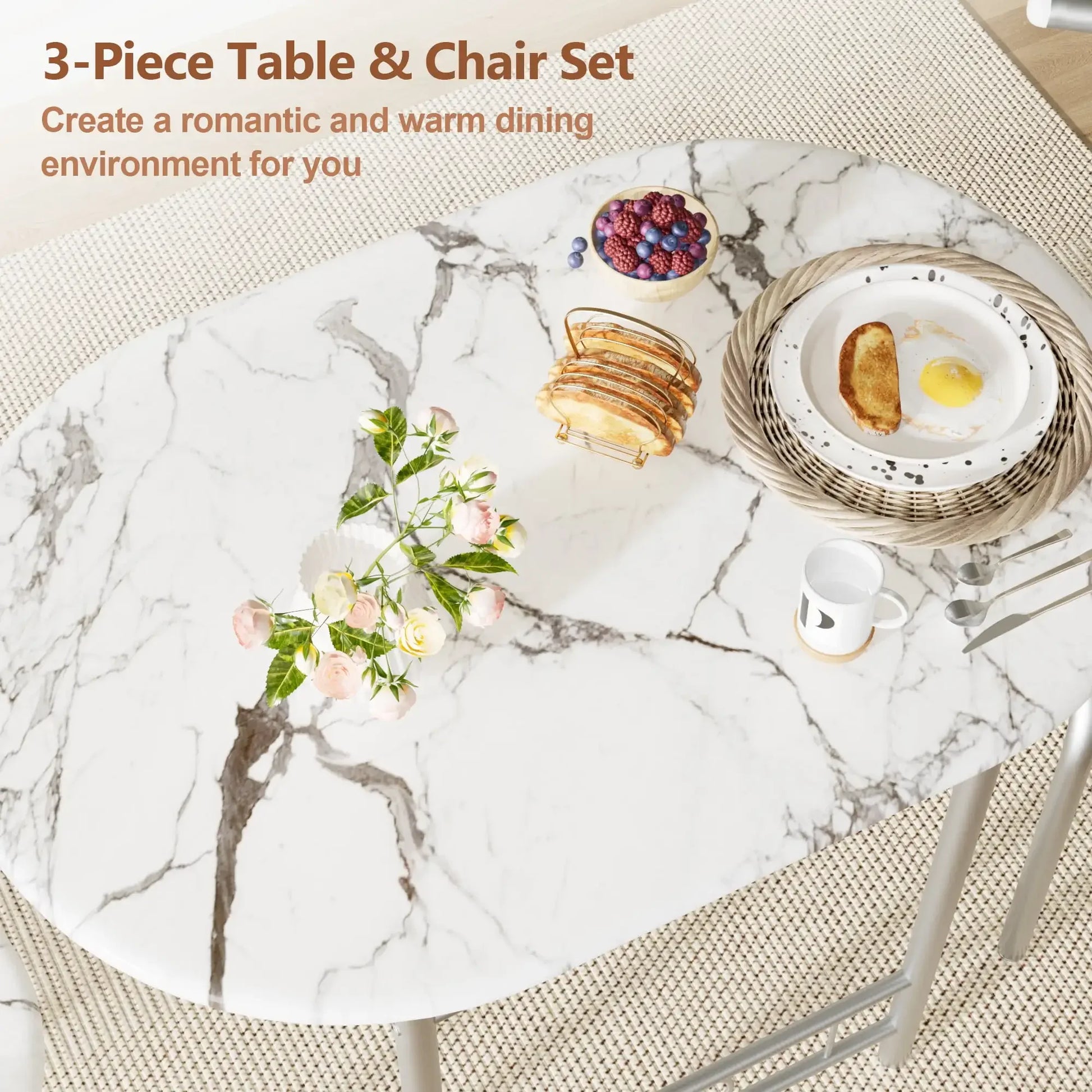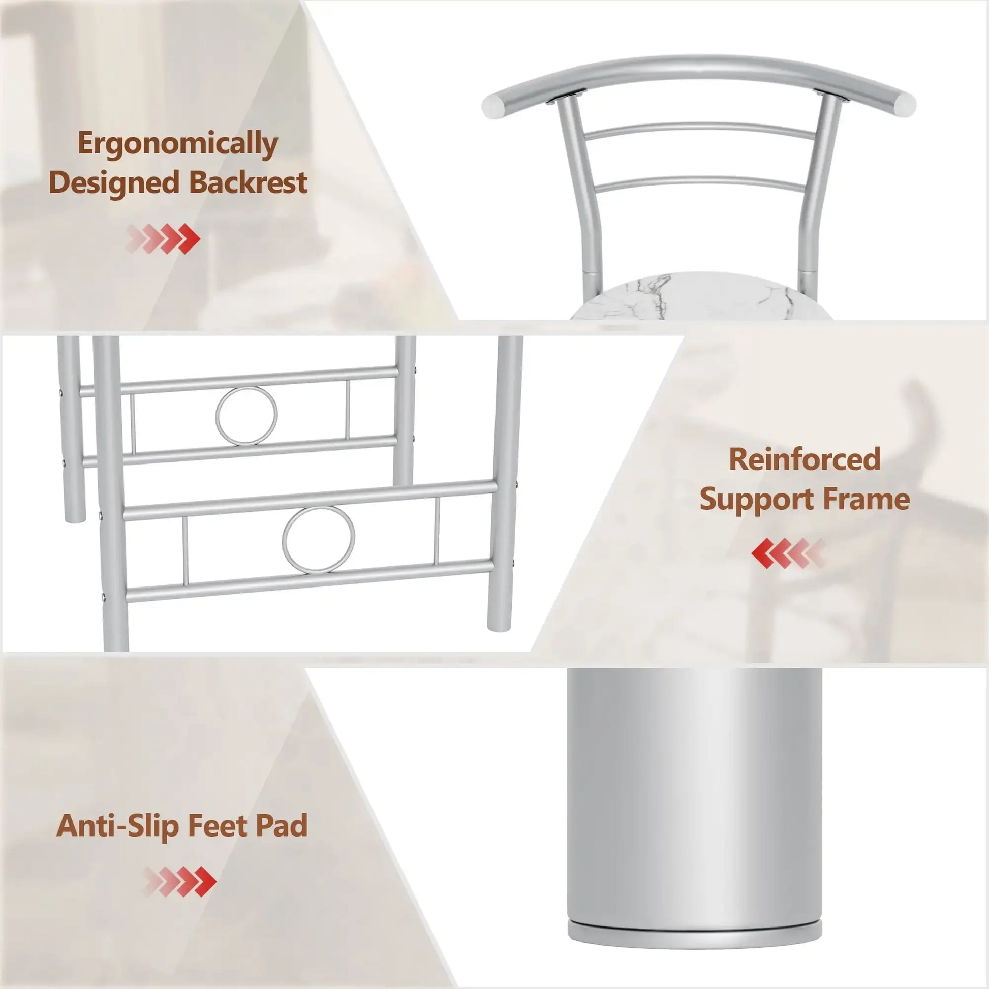 Quality Material:Vineego three piece dining table is made of MDF and metal frame with painted iron tube surface, which not only increases the rust resistance but also increases the stability, easy to clean and maintain.
