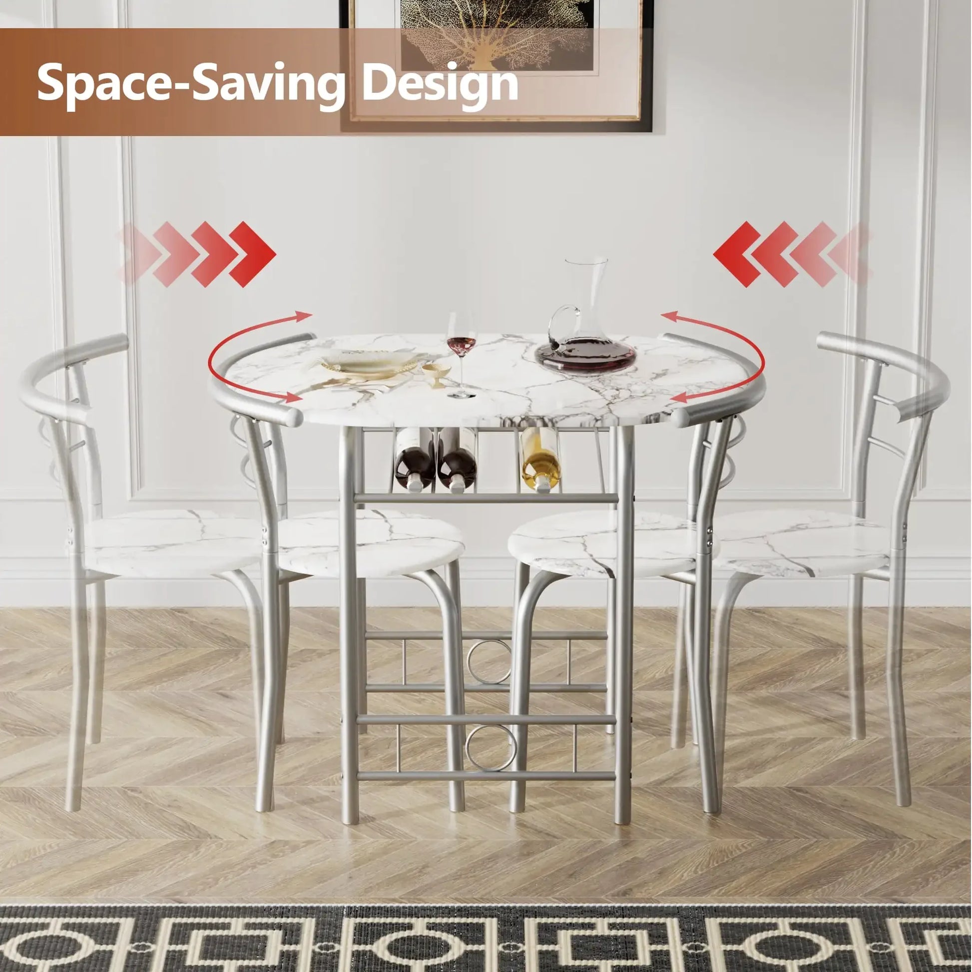 Space-Saving Design:The curve of each chair back and table corner are perfectly matched, so you can put the chair under the table when not in use; it improves the utilization of space.