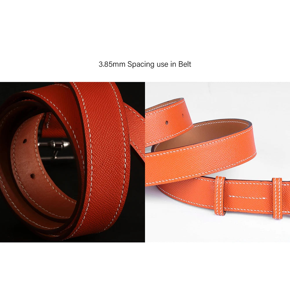 3------Optimized punching: The punching principle is based on the blunt tooth design with non-sharp blade, punches leather holes through the extrusion of the tooth end, and the expansion of the six-sided conical tooth body assists in maintaining a rounded cutting edge, reducing the friction of the stitching line, and effectively preventing the thread from being worn and fluffed too quickly, and the "pulling" phenomenon, which is more conducive to sewing beautiful double wave stitches.