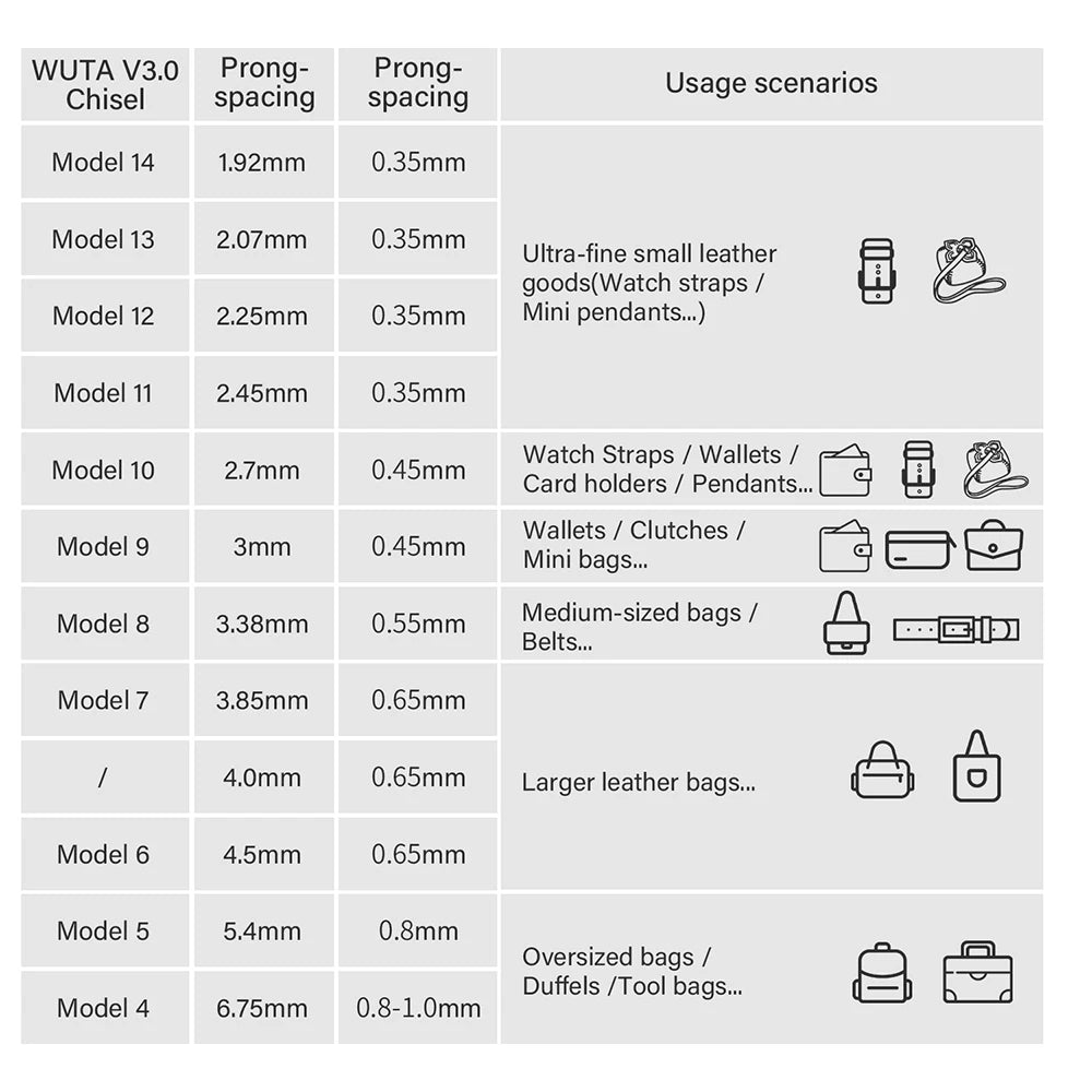 2. Punching table recommendations: Because the sharp and thin tip,please don't overexert when punch,please use a soft things like leather to protect it.It is recommended to use 4-5cm thick desk, and WUTA thickened cutting mat, which is quiet and stable, effectively improves the accuracy of punching and protects the chisel teeth, and is not disturbed by the elasticity of the desktop and the hollow feeling of rubber board.