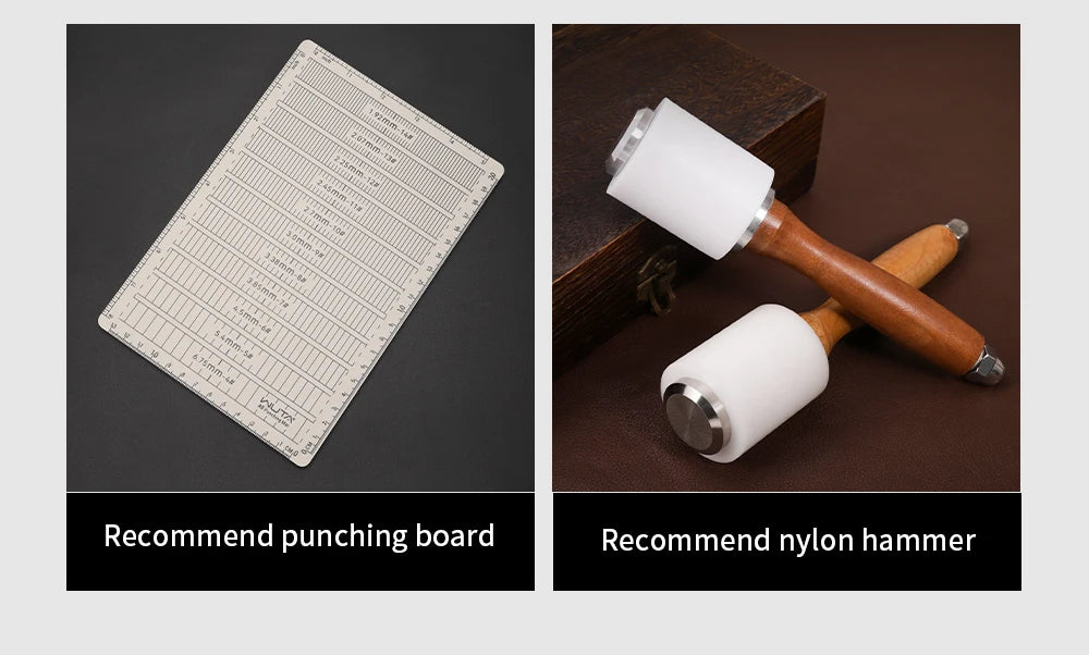 2. Punching table recommendations: Because the sharp and thin tip,please don't overexert when punch,please use a soft things like leather to protect it.It is recommended to use 4-5cm thick desk, and WUTA thickened cutting mat, which is quiet and stable, effectively improves the accuracy of punching and protects the chisel teeth, and is not disturbed by the elasticity of the desktop and the hollow feeling of rubber board.