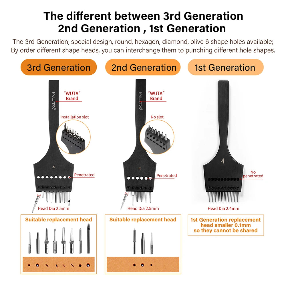 WUTA 3G Leather Punches Head Pricking Iron Removable Diamond Olive Round Hole French Style